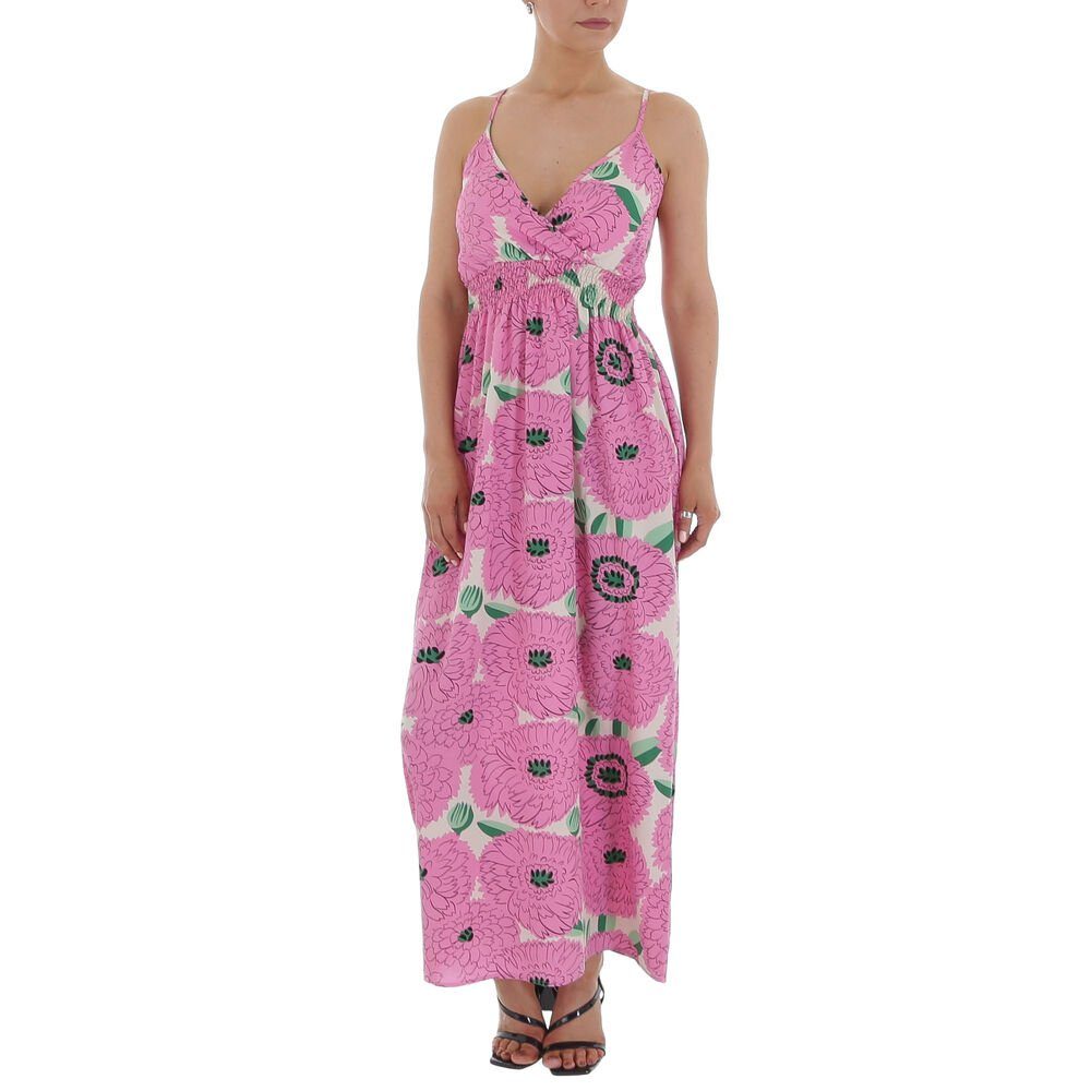 Dieses elegante Maxikleid besticht durch seine zarten Spaghettiträger und den tiefen V-Ausschnitt, der eine verführerische Note verleiht. Der fließende Stoff mit einem auffälligen floralen Muster sorgt für ein leichtes und feminines Tragegefühl. Die taillierte Passform mit elastischem Band betont die Figur und bietet gleichzeitig optimalen Tragekomfort. Dieses Kleid ist die perfekte Wahl für sommerliche Veranstaltungen oder entspannte Tage am Strand, kombiniert mit Sandalen oder High Heels.