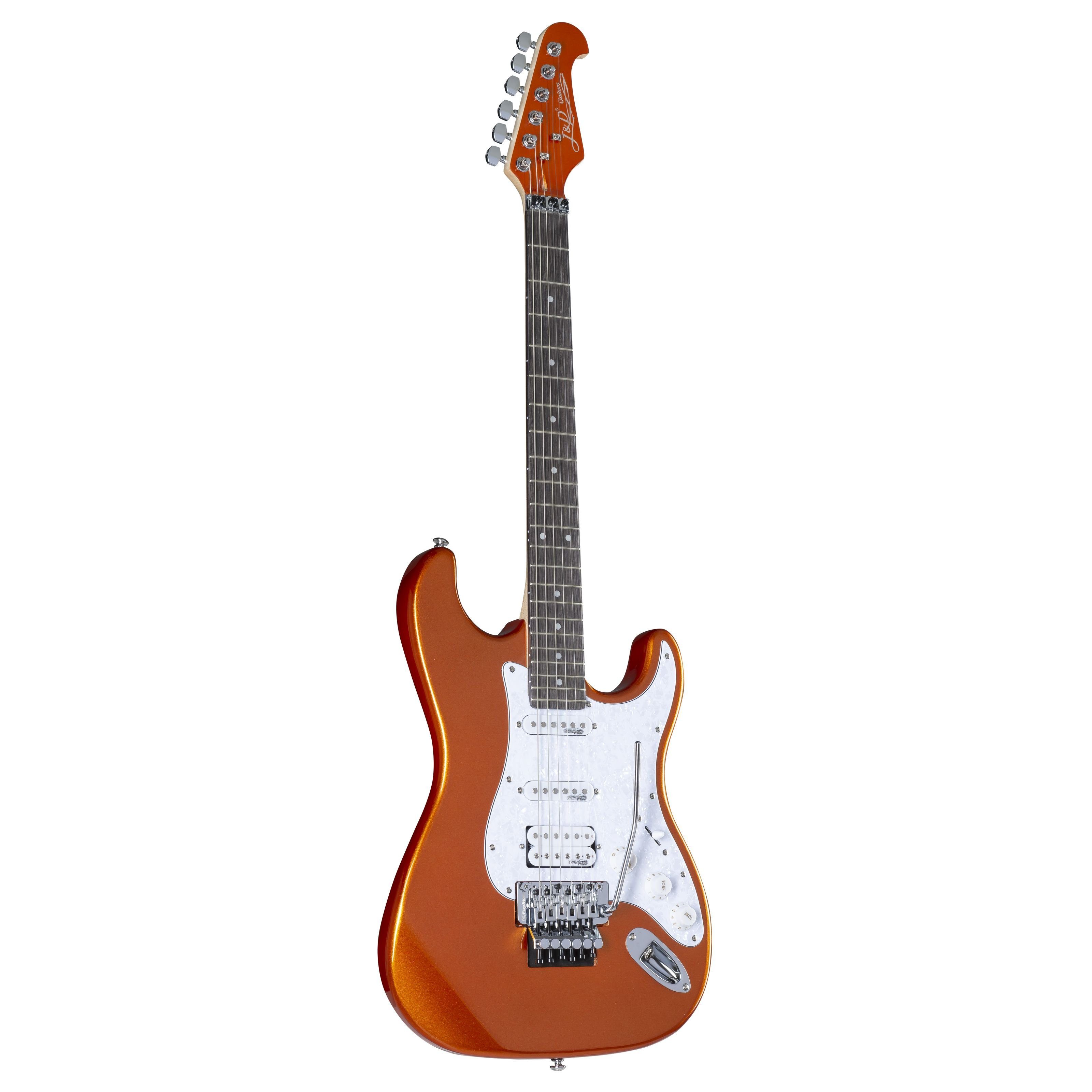 | Lieferumfang | Hochwertige ST-Style E-Gitarre in Metallic Orange, ideal für angehende Shredder, Rocker und Metalheads. Ausgestattet mit Wilkinson M Series Pickups im HSS-Setup für ein vielfältiges Klangspektrum. Mit Original Floyd Rose Special Double-Locking Tremolo für optimale Stimmstabilität. Ergonomisches Design mit Lindekorpus und bequemem C-Profil Ahornhals für ermüdungsfreies Spielen. Kräftige Wilkinson M Series Tonabnehmer für ein breites Klangbild mit saftiger Distortion und klaren Clean-Sounds. MS-ID: GIT0058722-000 Hersteller: J & D Bauform: ST-Style Korpus: Linde Decke: Nein Binding: Nein Hals: Ahorn Halskonstruktion: Geschraubt Halsprofil: ' C' Griffbrett: Composite Griffbrett-Typ: Bundiert Mensur in mm: 648 Anzahl Bünde: 21 Griffbretteinlagen: Dot Sattelmaterial: Locking-Sattel Tonabnehmerbestückung: HSS Tonabnehmerhersteller: Wilkinson Halstonabnehmer: Single Coil Mitteltonabnehmer: Single Coil Stegtonabnehmer: Humbucker Aktive Tonabnehmer: Nein Coil-Splitting: Nein Piezo-Tonabnehmer: Nein Elektronik: Passiv Schalter: 5-Weg Regler: Vol, Tone, Tone Brückentyp: Locking Tremolo Brücke: Floyd Rose Special Tremolo Saitenhalter: Nein Mechaniken: Druckguss Gurtpins: Standard Hardware: Chrom Stimmung ab Werk: Standard E Finish: Hochglanz Farbe: Orange Farbbezeichnung: Metallic Orange Gewicht Range (kg): 2,5 - 5 Saitenzahl: 6 Koffer enthalten: Nein Gigbag enthalten: Nein Zertifikat: Nein CITES relevant: Ja |