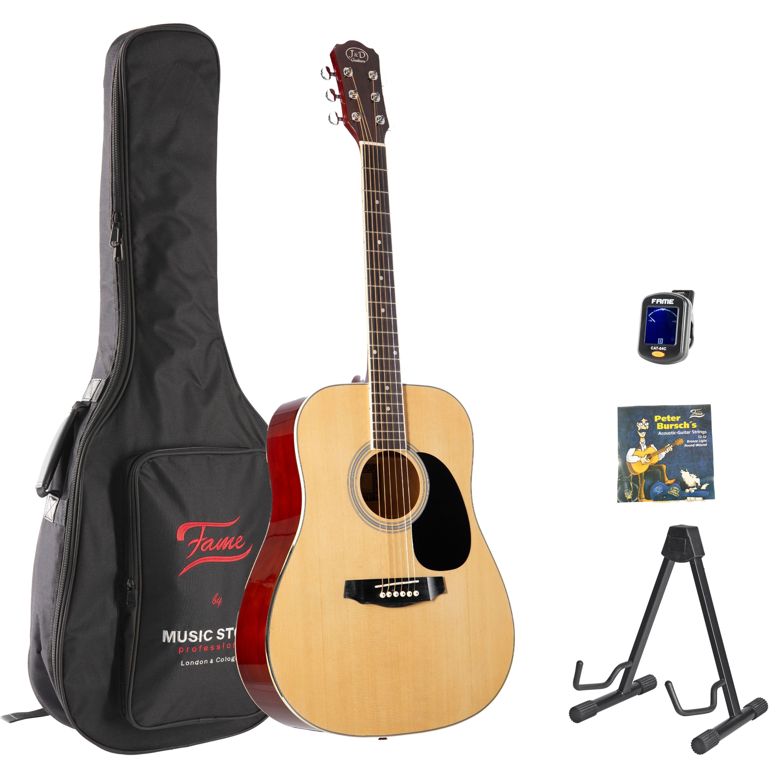 | Lieferumfang | Hochwertiges Westerngitarren-Set für Einsteiger und Fortgeschrittene. Dreadnought-Bauform mit Fichtendecke und Agathis Boden & Zargen für klaren Klang. Komfortables Halsprofil aus Mahagoni mit Composite Griffbrett und Dot-Inlays. Inklusive Westerngitarrensaiten und Zubehörpack. Naturfarbenes Finish mit Multi-Stripe Rosette und schwarzem Schlagbrett für stilvolles Design. MS-ID: GIT490 Hersteller: J & D Bauform: Dreadnought Cutaway: Nein Decke: Fichte Massive Decke: Nein Finish Decke: Hochglanz Verstrebung: X-Bracing Boden & Zargen: Agathis Massive Boden & Zargen: Nein Finish Boden & Zargen: Hochglanz Binding: Multi-Ply Hals: Mahagoni Halsprofil: ' C' Griffbrett: Composite Inlays: Dot Anzahl Bünde: 20 Sattelmaterial: Kunststoff Sattelbreite in mm: 43 Mensur in mm: 648 Steg: Composite Stegeinlage: Kunststoff Mechaniken: Druckguss Hardware: Chrom Saitenzahl: 6 Tonabnehmer: Nein Tonabnehmersystem: Nein Stimmgerät: Nein Rosette: Multi-Stripe Schlagbrett: Schwarz Bridge Pins: Kunststoff Gewicht Range (kg): 0 - 2,5 Farbe: Natur Farbbezeichnung: Natural Koffer enthalten: Nein Gigbag enthalten: Nein |