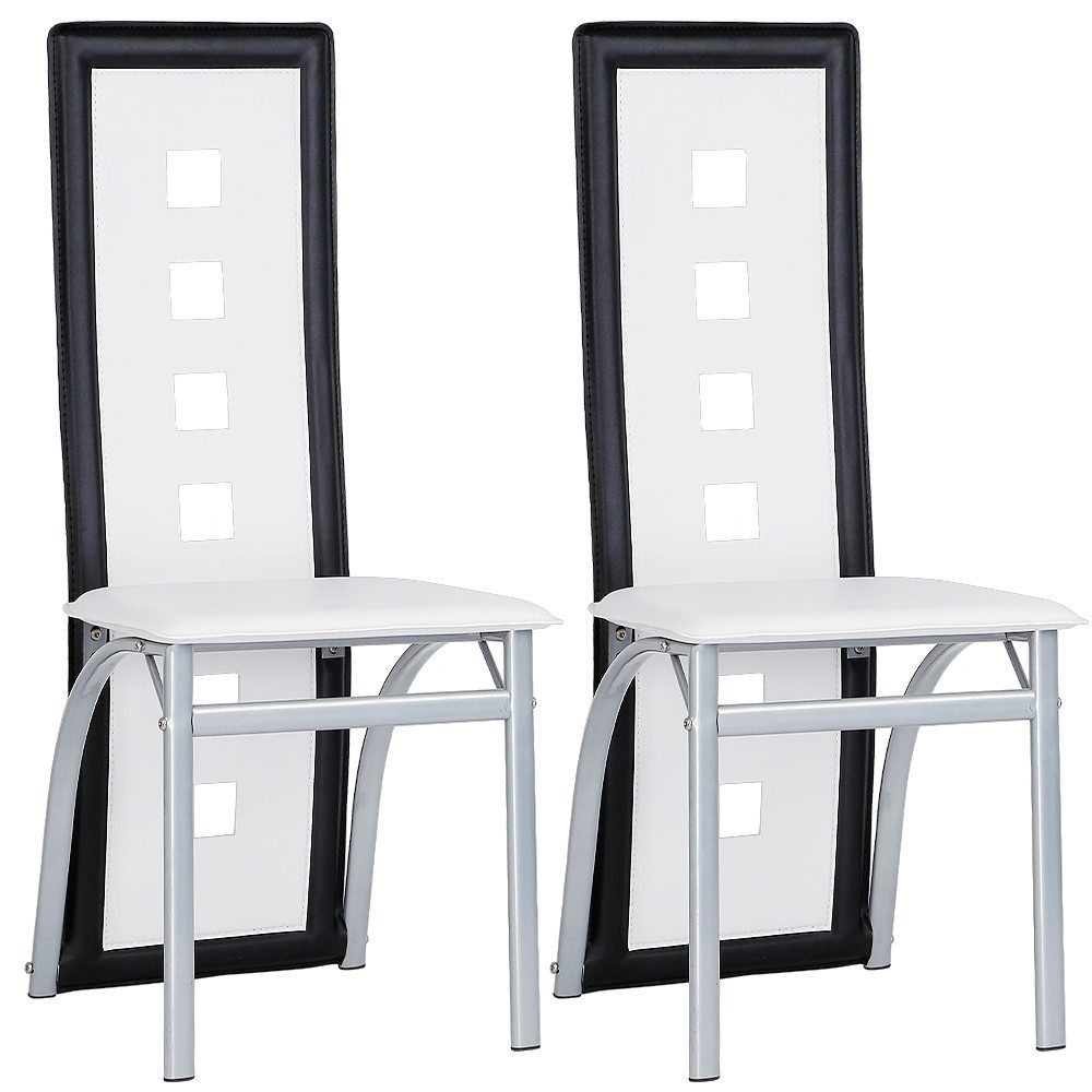Das Esszimmerstuhl-Set mit schlichtem Aussehen und modernem Stil kann bei verschiedenen Gelegenheiten verwendet werden und passt sich an verschiedene Einrichtungsstile an. Es kann an Räume mit verschiedenen Einrichtungsstilen angepasst werden. Es eignet sich besonders für Familientreffen und ist ideal für Esszimmer, Lounges, Empfangsräume und kann auch als Stuhl in Küchen, Cafés, Lounges, Konferenzräumen, Garderoben, Leseräumen und Büros verwendet werden. Material: Metall-Gestell und Kunstleder-Bezug. Max. Belastbarkeit: 110 kg. Einfache Montage: Mit Hilfe der beigelegten Montageanleitung sind die Stühle in wenigen Minuten aufgebaut. Lieferumfang: 2 x Esszimmerstuhl 1 x Montagematerial 1 x Anleitung