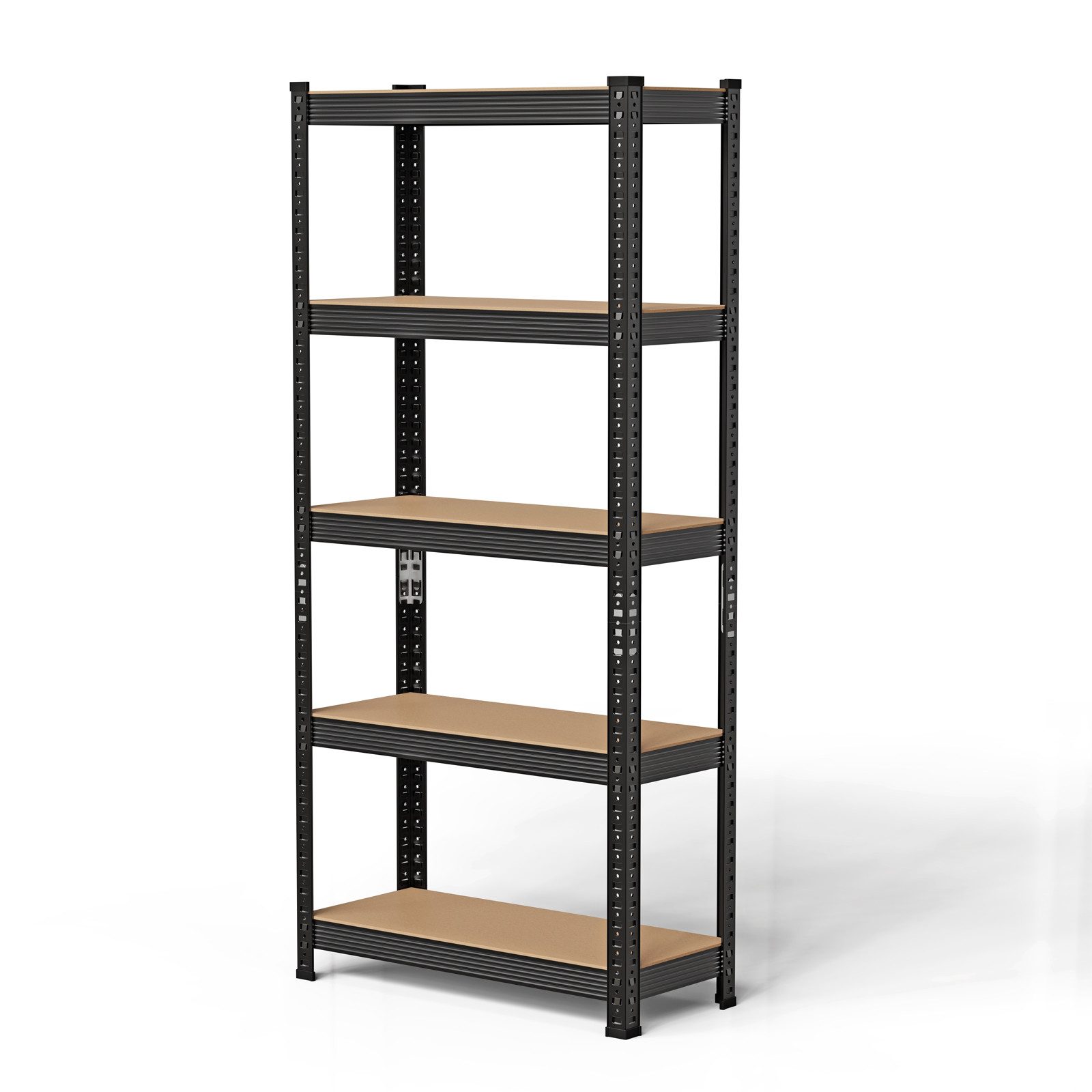 Der Einbau der Einlegeböden ist völlllig frei und individuell gestaltbar, da die Metallschienen in der gesamten Länge entlang der großen Regalstreben befestigt werden können. Dies ist einfach durch das Einstecken der Metallschienen in die Steckschlitze der Regalstreben zu erledigen und erlaubt mehr Raum für größere Werkzeuge, Aufbewahrungsboxen, Kisten und Utensilien aller Art!