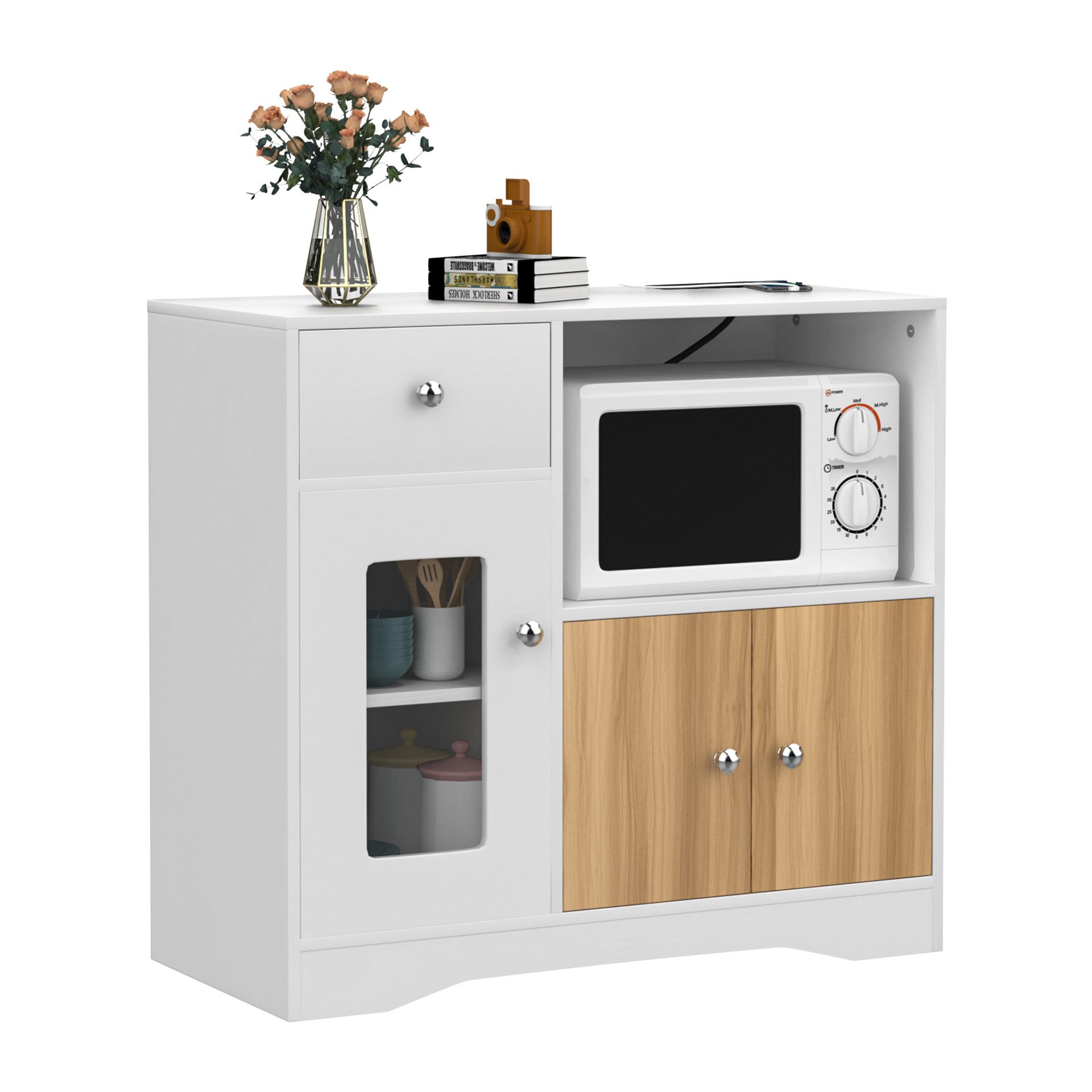 Großer StauraumDieser küchenbuffet buffetschrank umfasst 3 türschränke und 1 ausziehbare schubladen, eine zentrale offene arbeitsfläche, 2 einlegeböden für flexible anpassung, um ihre individuellen bedürfnisse zu erfüllen.