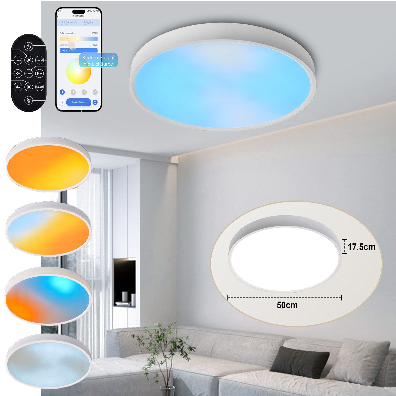 1 × Intelligente LED-Deckenleuchte