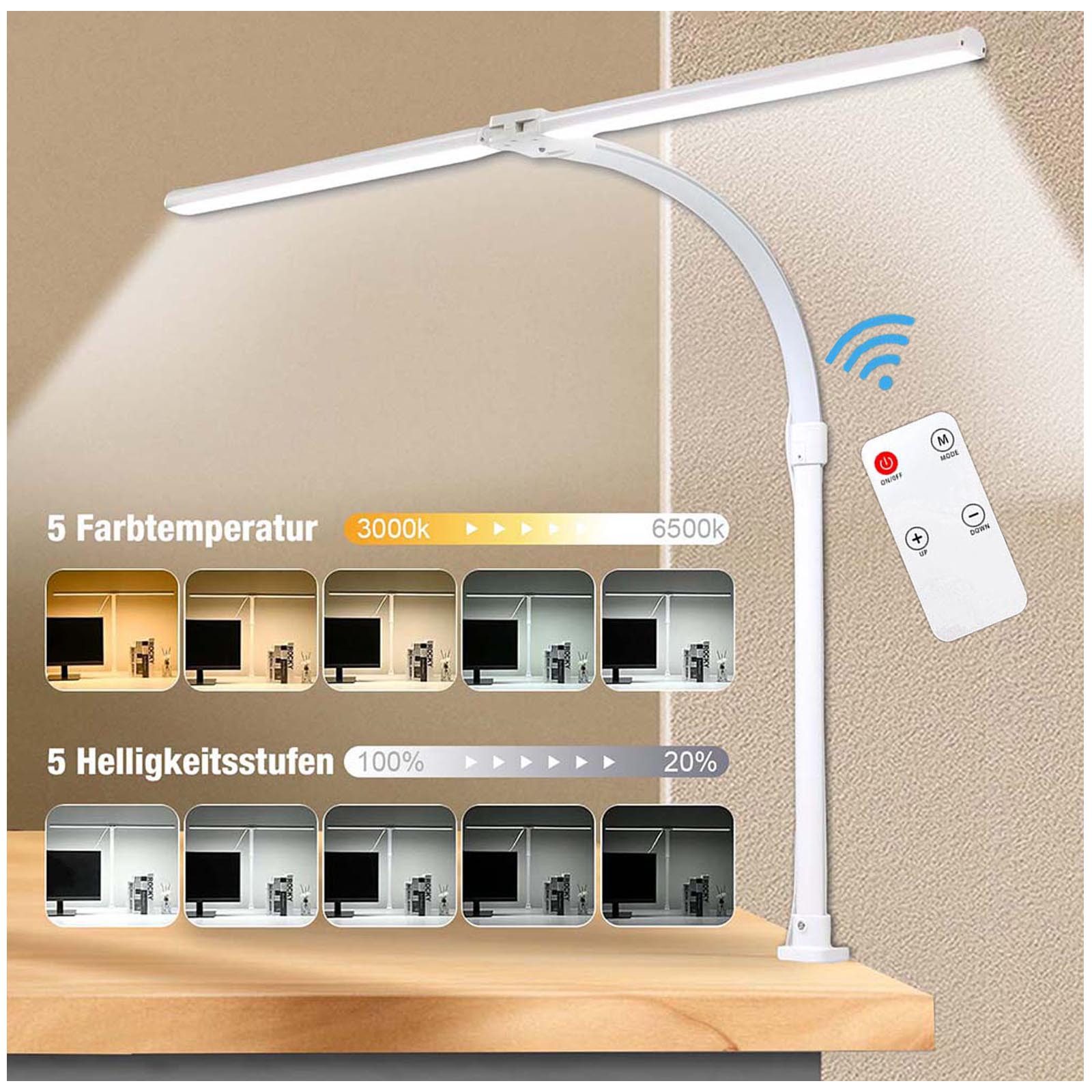 1× LED-Schreibtischlampe mit Doppelkopf und Klemme