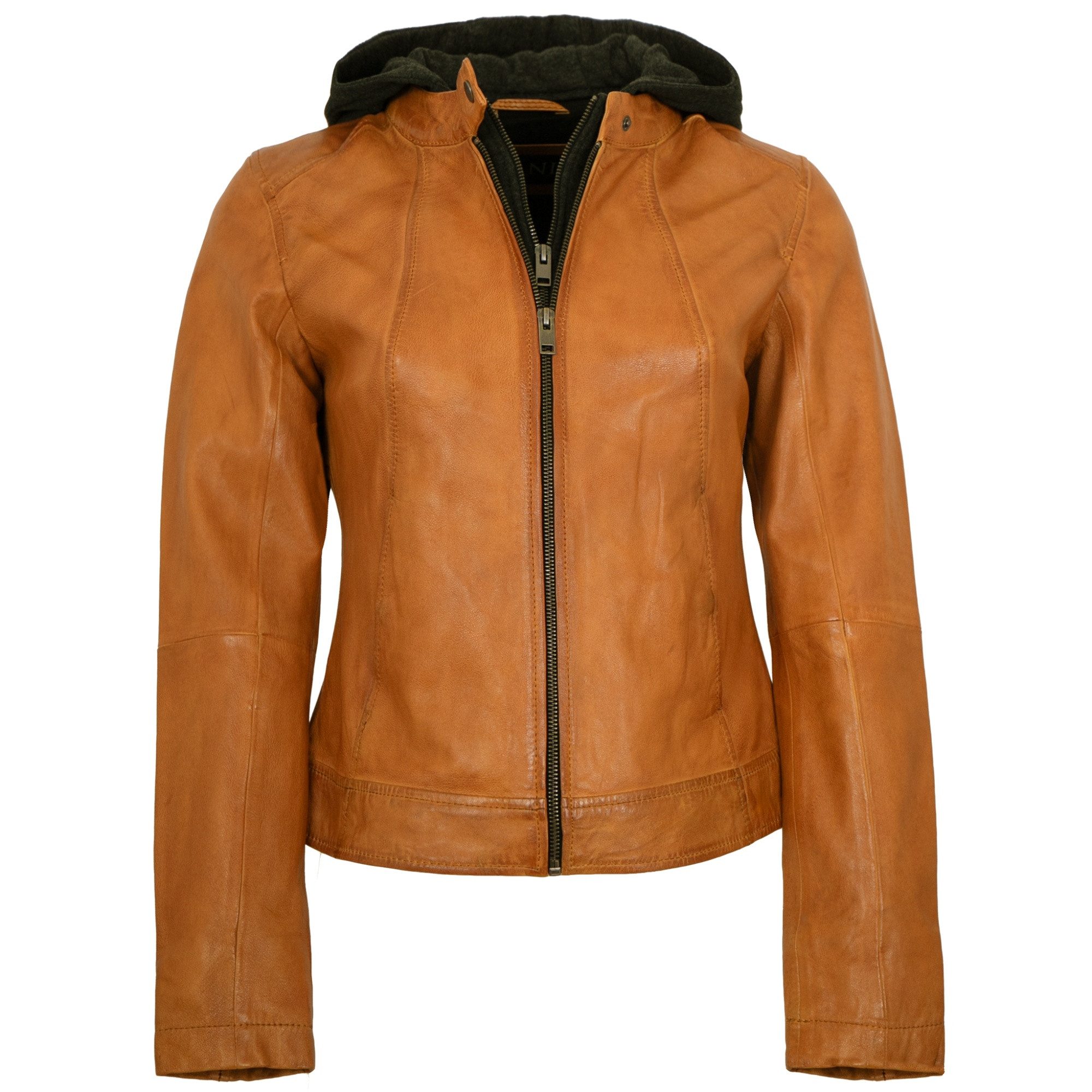| Besondere Merkmale | Jilani Collection - Damen Lederjacke Lammnappa Kapuze dunkles gelb |