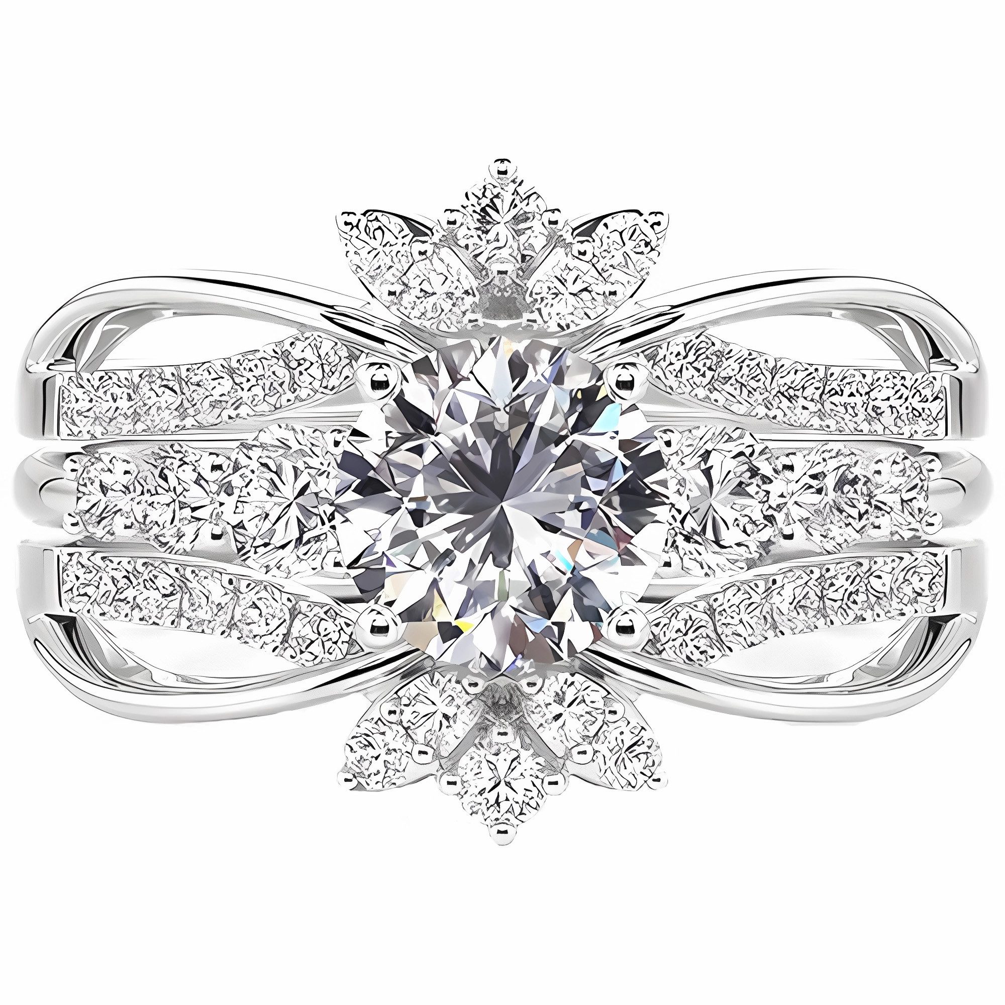 Zentraler Diamant: Der zentrale Diamant ist ein rundgeschnittener Stein mit einem Gewicht von 1,2 ct. Er strahlt eine unvergleichliche Pracht aus