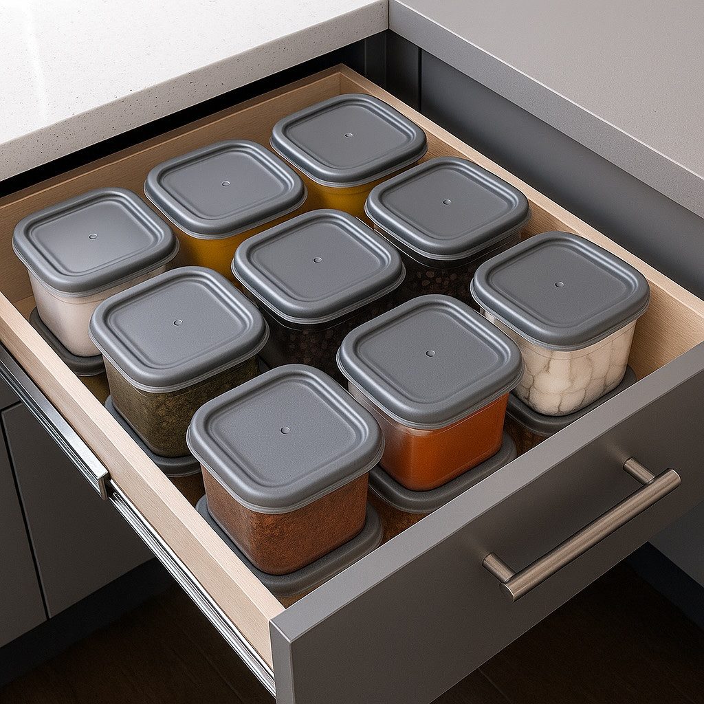 Platzsparende Vorratsdosen 12er Set für Schubladen und Küche