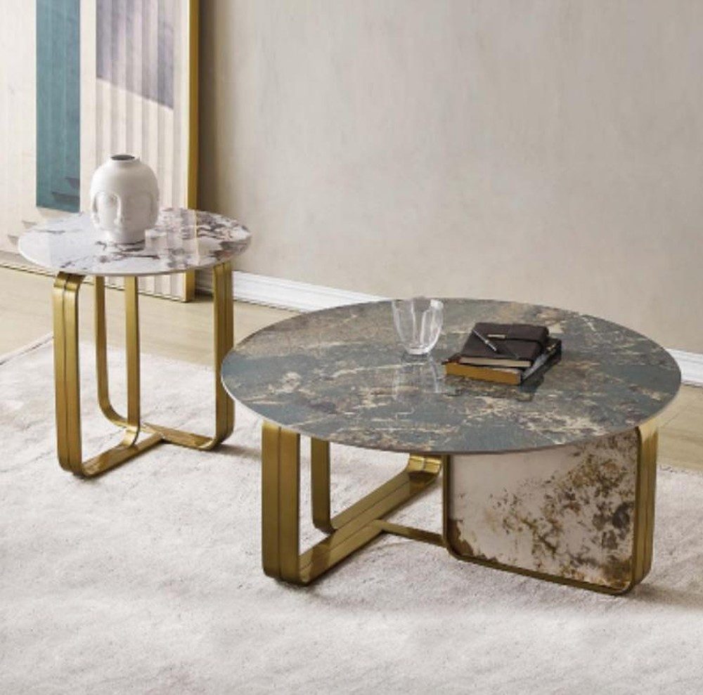 Entdecken Sie den eleganten Beistelltisch für das moderne Wohnzimmer im luxuriösen Design. Dieser Couchtisch vereint Ästhetik und Funktionalität auf perfekte Weise und wird zum Highlight Ihres Wohnraums. Mit einer hochwertigen Verarbeitung und exzellenten Materialien, darunter robuste Edelstahlfüße, strahlt er zeitlose Eleganz aus. Der Tisch überzeugt mit seinen großzügigen Maßen von 90 x 90 x 40 cm, während der passende zweite Tisch (40 x 40 x 50 cm) Ihnen zusätzliche Flexibilität bietet. Die ansprechende goldfarbene Oberfläche und das Art Deco-Design verleihen jedem Raum eine exklusive Note. Made in Europa, garantiert hohe Qualität und nachhaltige Produktion. Einfach zu reinigen mit einem feuchten Tuch, ist dieser Couchtisch auch praktisch im Alltag. Er ist ideal für Erwachsene und Jugendliche, die ihren Wohnraum modern und stilvoll gestalten möchten. Setzen Sie Akzente und verleihen Sie Ihrem Wohnzimmer einen Hauch von Luxus mit diesem einzigartigen Möbelstück. Tauchen Sie ein in die Welt des modernen Wohnens!
