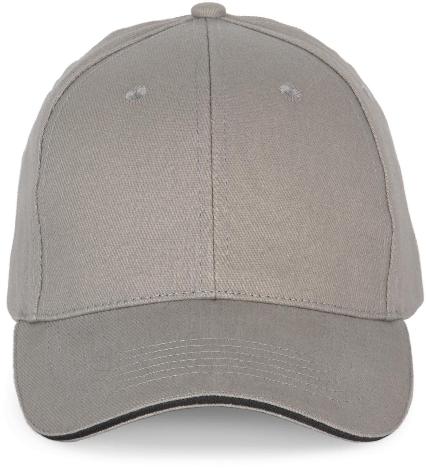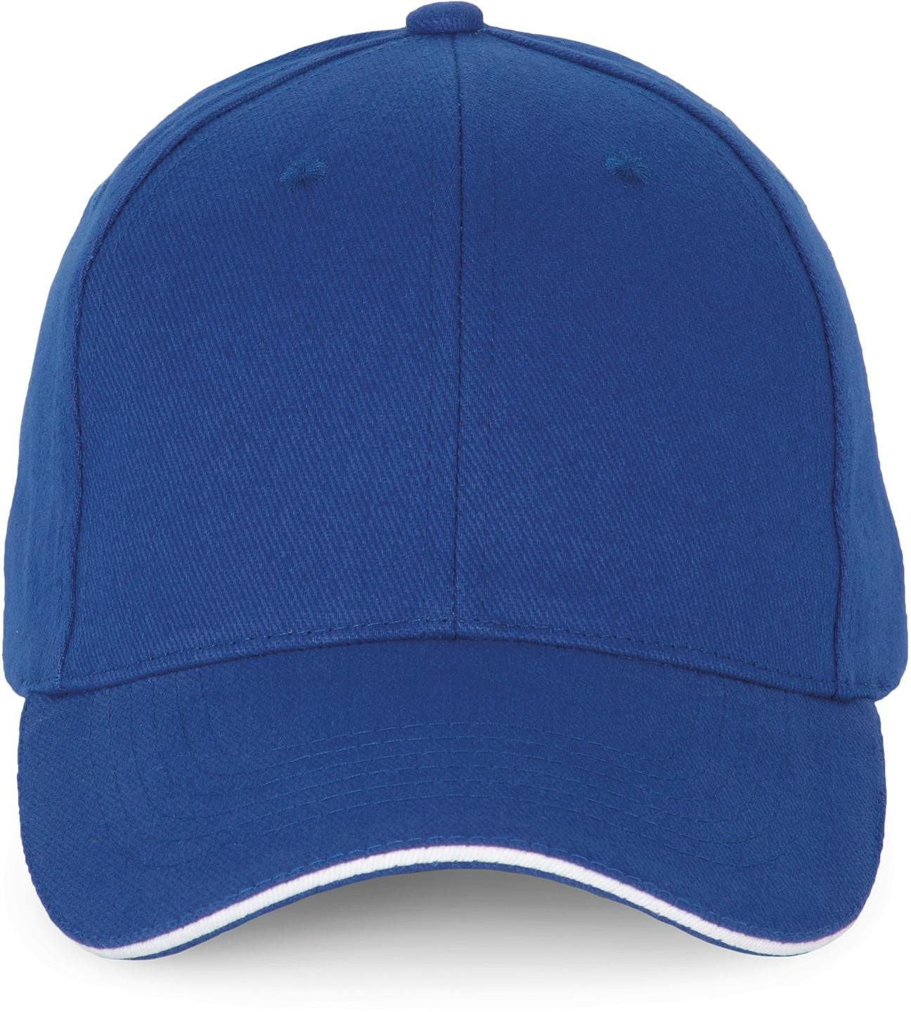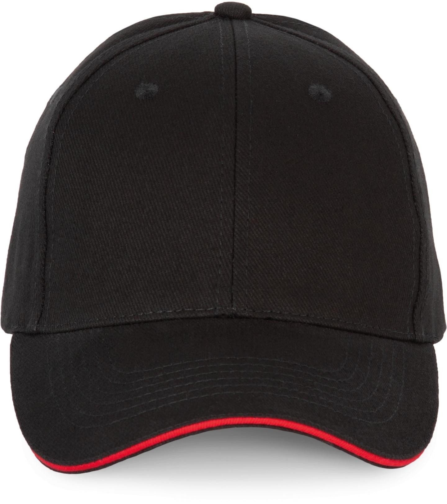 100 % Baumwolle. 6-Panel-Kappe mit Kontrast-Sandwichschirm. Über eine Metallschnalle verstellbarer Verschluss mit Schlaufe mit automatischer Bockierung.