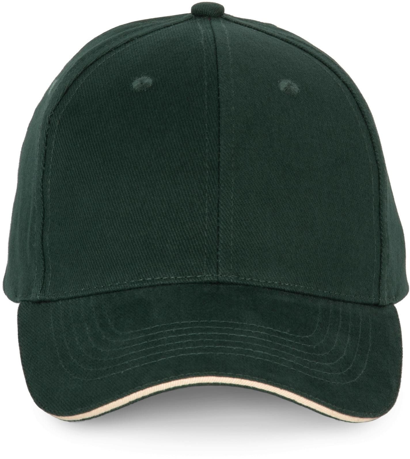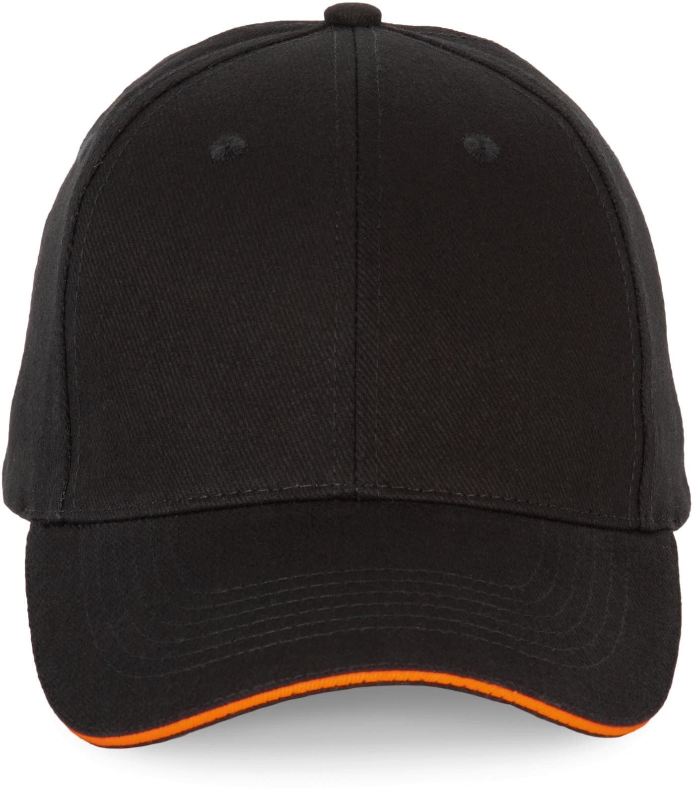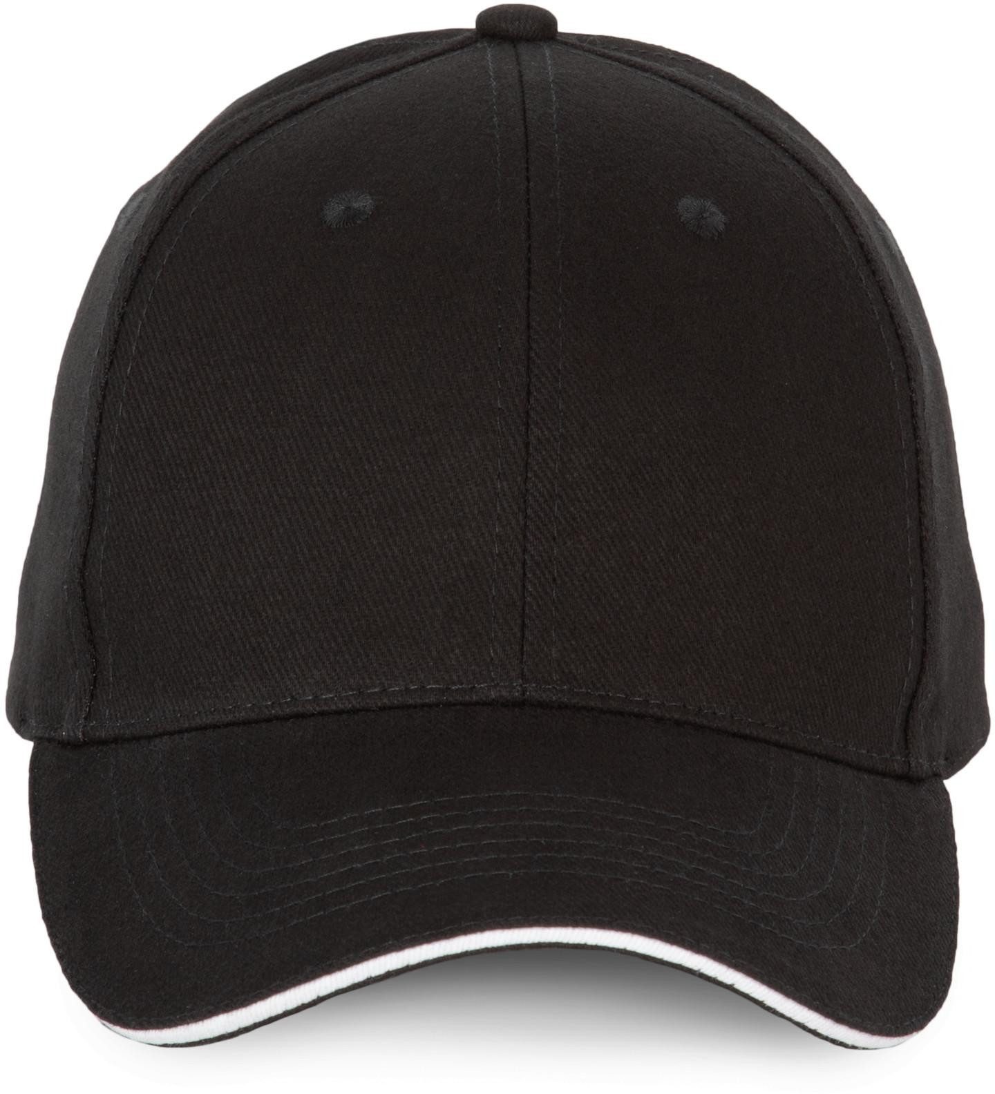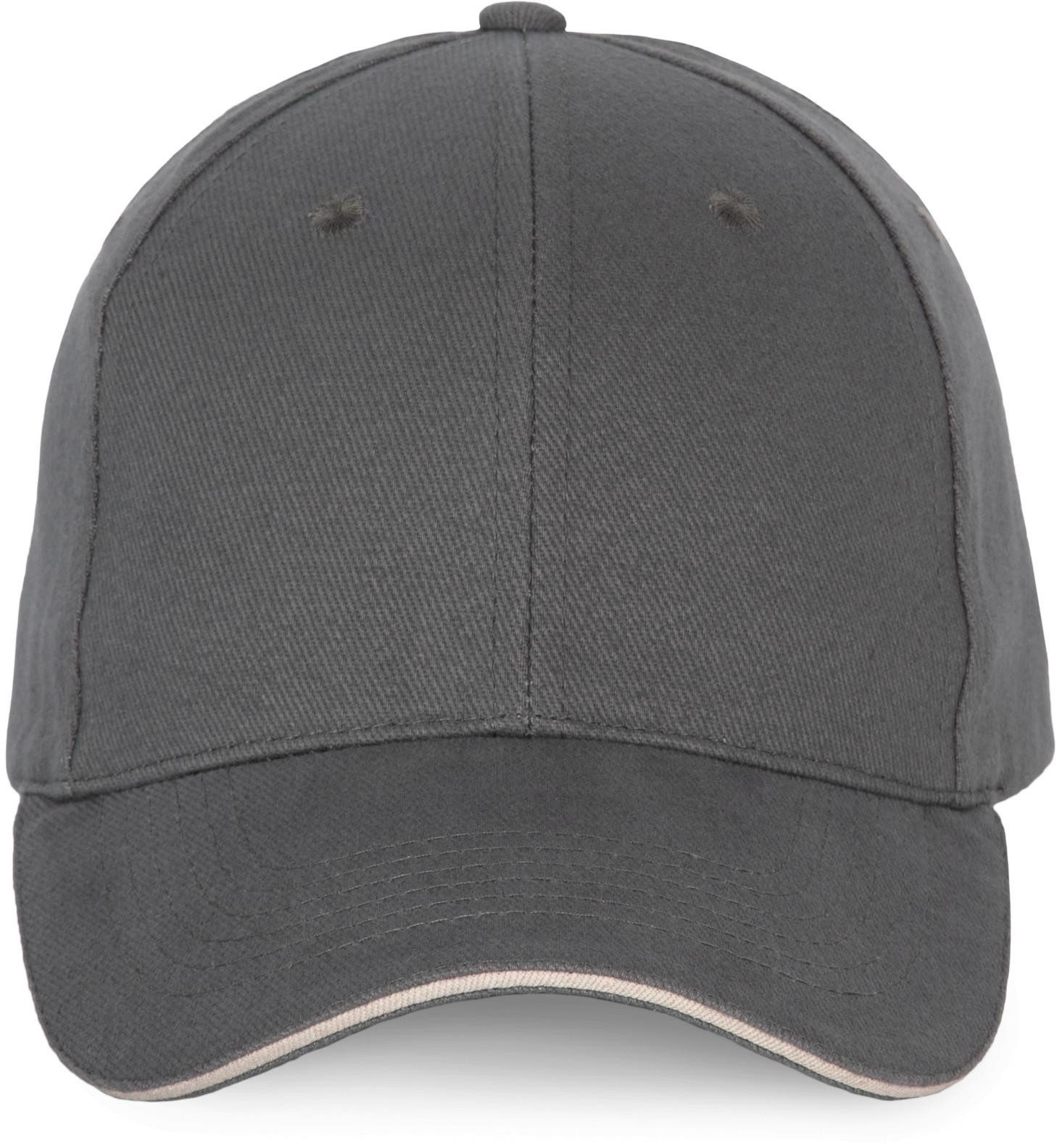 100 % Baumwolle. 6-Panel-Kappe mit Kontrast-Sandwichschirm. Über eine Metallschnalle verstellbarer Verschluss mit Schlaufe mit automatischer Bockierung.
