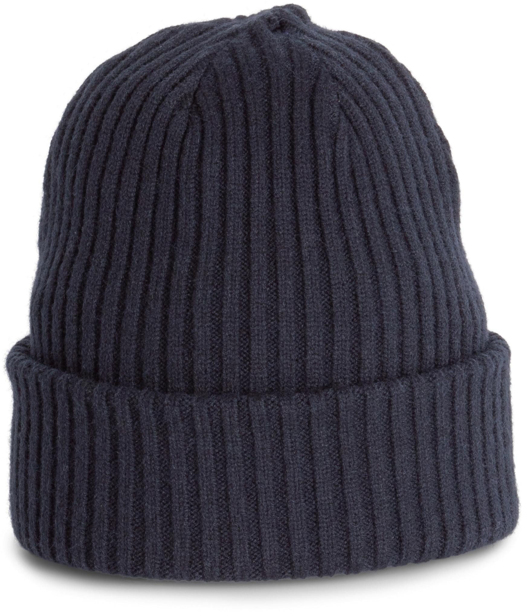 49 % Viskose / 32 % Polyester / 19 % Polyamid. Strick-Mütze Typischer Hochseefischer-Schnitt.