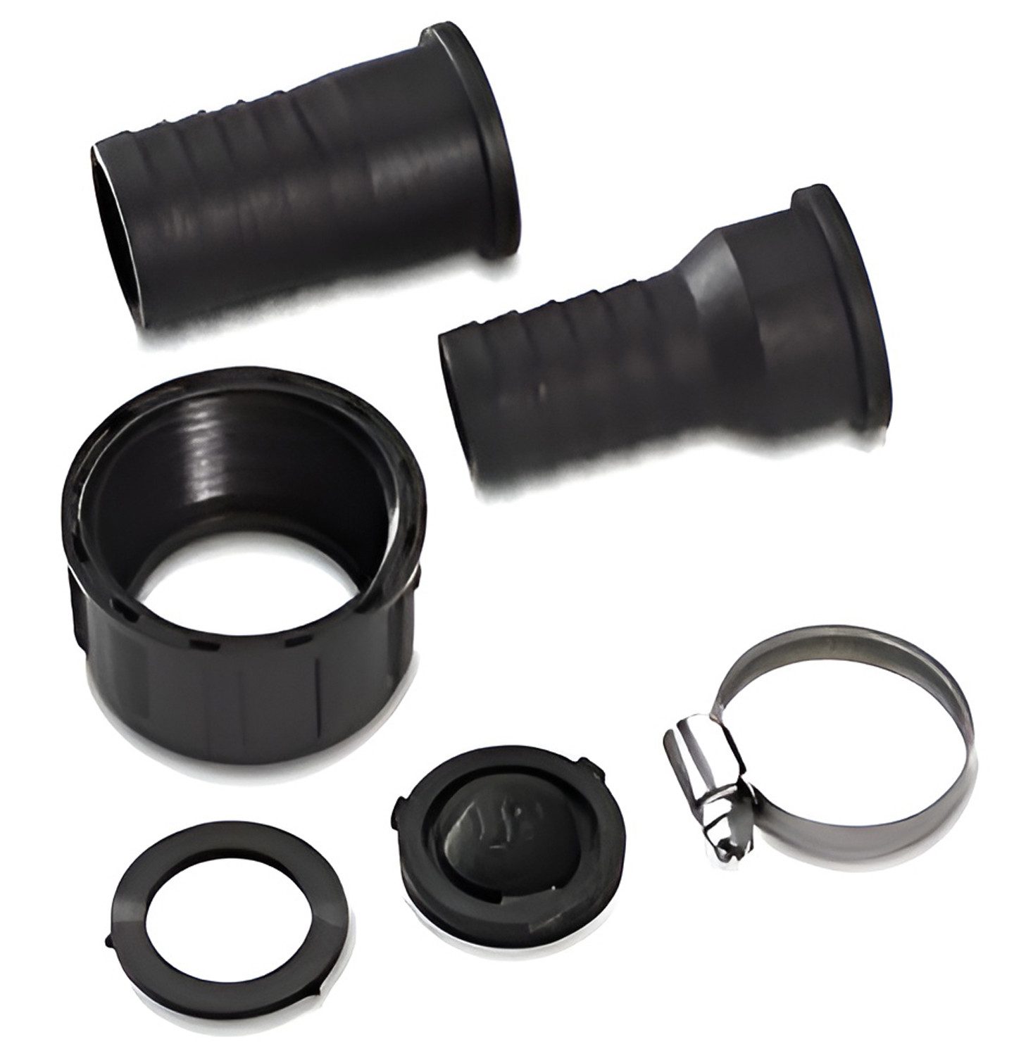 2 x Pumpenanschlussstücke inkl. Flachdichtung, Rückschlagventil, Schlauchklemme