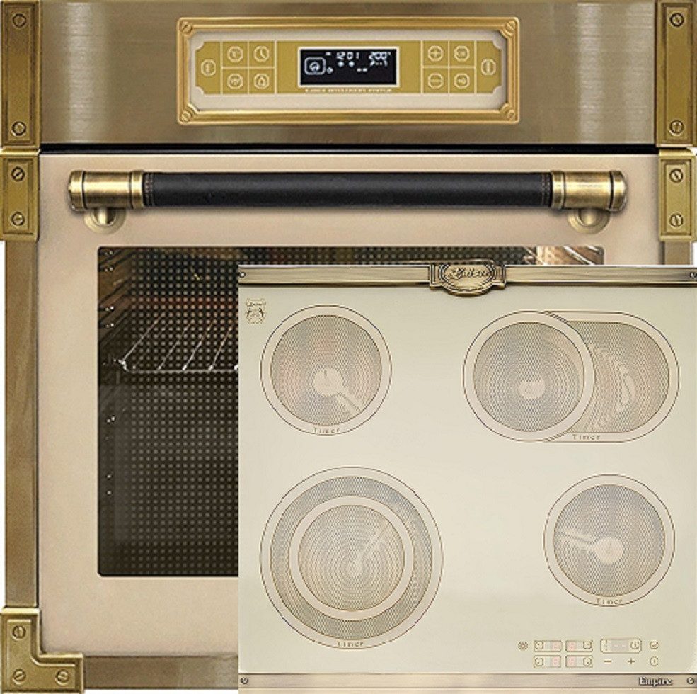 | Elfenbein Glaskeramik / Dekor – massives Metall |