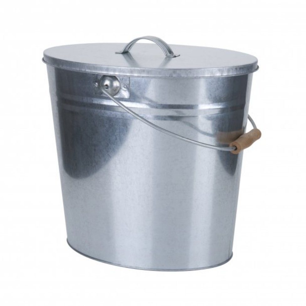 Praktischer Ascheeimer, ideal zum Reinigen von Holz-, Pellet-, Holzkohle- u. Kaminöfen, Kaminen, Grills und Feuerstellen – einfach heiße Asche einfüllen, abkühlen lassen, entsorgen Inklusive Deckel mit Henkel/Griff zum Schutz vor Verwehung und Verstreuung der Asche – mit Henkel für einen leichten Transport von Kohle und Briketts Aus verzinktem Stahl, Farbe: silber, ovale Form, stabil und robust Gut geeignet als nützliches Zubehör für Kamin, Ofen und Grill, durch praktischen Tragehenkel mit Holzgriff auch ein schönes Deko-Element, perfekt für den In- und Outdoor-Bereich Maße: ca. 34 x 30 x 24 cm, Volumen: ca. 15 l<(>,<)> Gewicht: ca. 1,2 kg