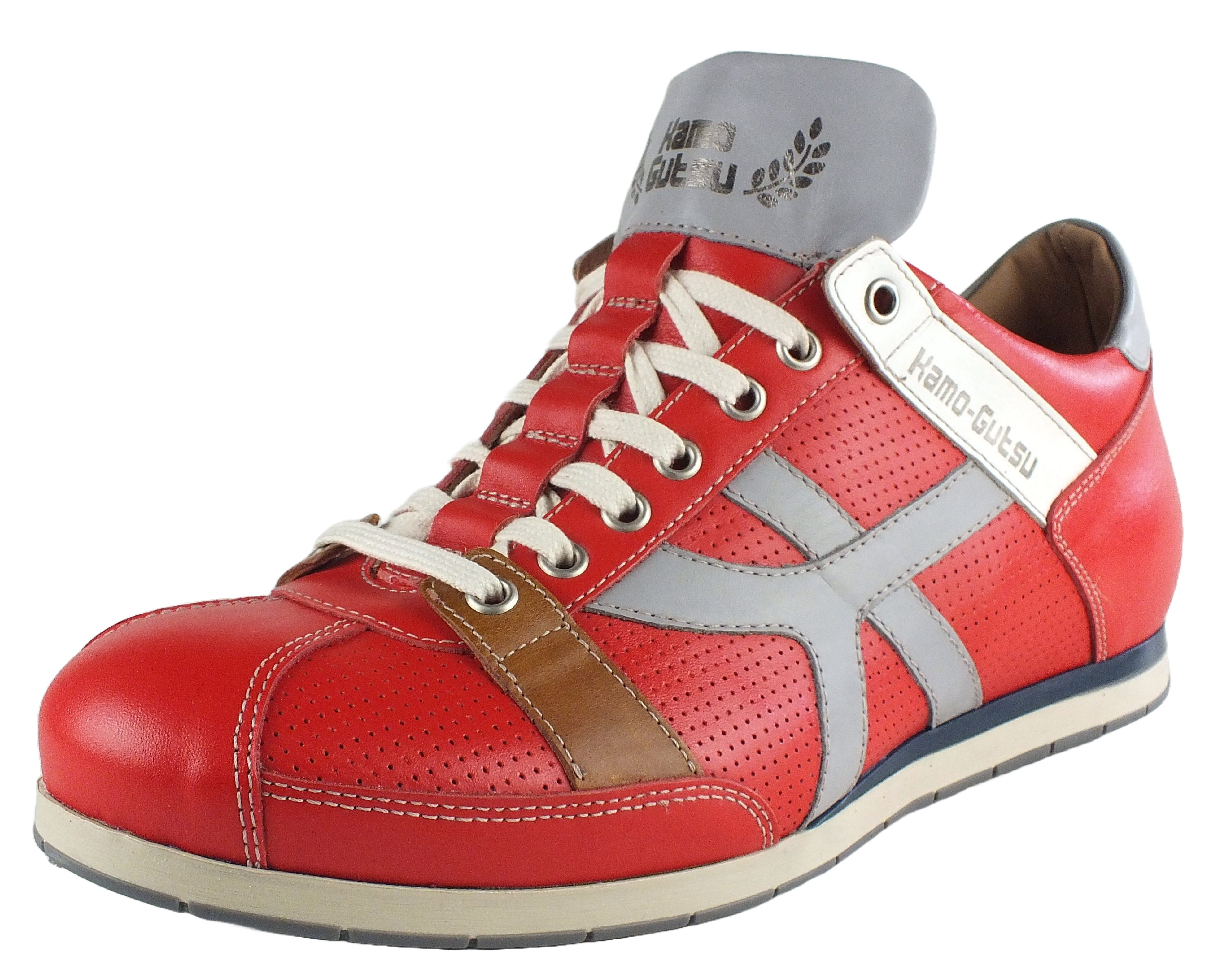 Kamo-Gutsu Herren Sneaker. Zusammen mit dem Volllederfutter und herausnehmbaren Schaumstoff-Innensohle mit Rindsleder bietet Ihnen der handgefertigte Schuh einem beispiellosen Tragekomfort. Die Schuhmarke KAMO-GUTSU wird in Belgien entworfen, in Italien hergestellt und wurde inspiriert von den Freizeit- / Sportschuhen der 20er und 30er Jahre. Der Herren Sneaker zeichnet sich durch sein hochwertiges Design und seine komfortablen Eigenschaften aus. Das Obermaterial besteht aus echtem Leder, was dem Schuh nicht nur ein stilvolles Aussehen verleiht, sondern auch für Strapazierfähigkeit und Langlebigkeit sorgt. Die Lederoberfläche verleiht dem Sneaker eine gewisse Eleganz und passt gut zu verschiedenen Outfits, sei es lässig oder etwas formeller. Das Innenfutter des Sneakers besteht ebenfalls aus Leder, was nicht nur eine angenehme Haptik bietet, sondern auch dazu beiträgt, ein gesundes Fuß Klima zu bewahren. Leder als Innenfuttermaterial ist atmungsaktiv und hilft dabei, Feuchtigkeit abzuleiten, was besonders bei längeren Tragezeiten den Komfort erhöht. Ein besonderes Merkmal dieses Herren Sneakers ist das Wechselfußbett. Das bedeutet, dass die Einlegesohlen des Schuhs ausgetauscht werden können. Dies ermöglicht eine individuelle Anpassung an die Bedürfnisse und Vorlieben des Trägers. Zum Beispiel könnten orthopädische Einlagen eingesetzt werden, um besonderen Halt und Unterstützung zu bieten, oder die Einlegesohlen könnten je nach Aktivität oder persönlicher Vorliebe gewechselt werden.
