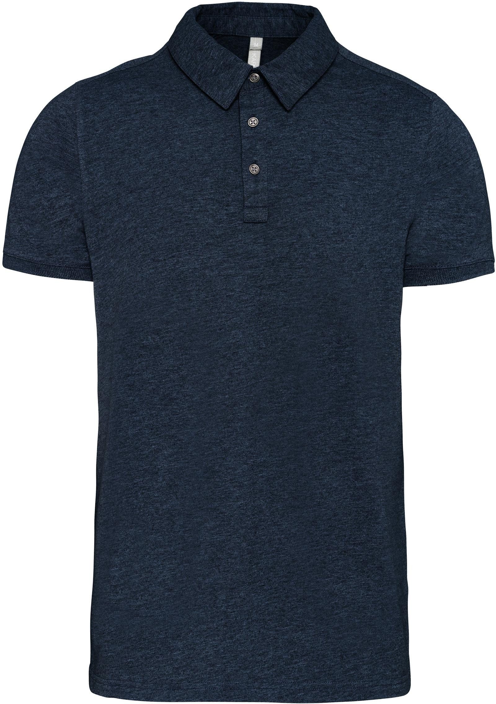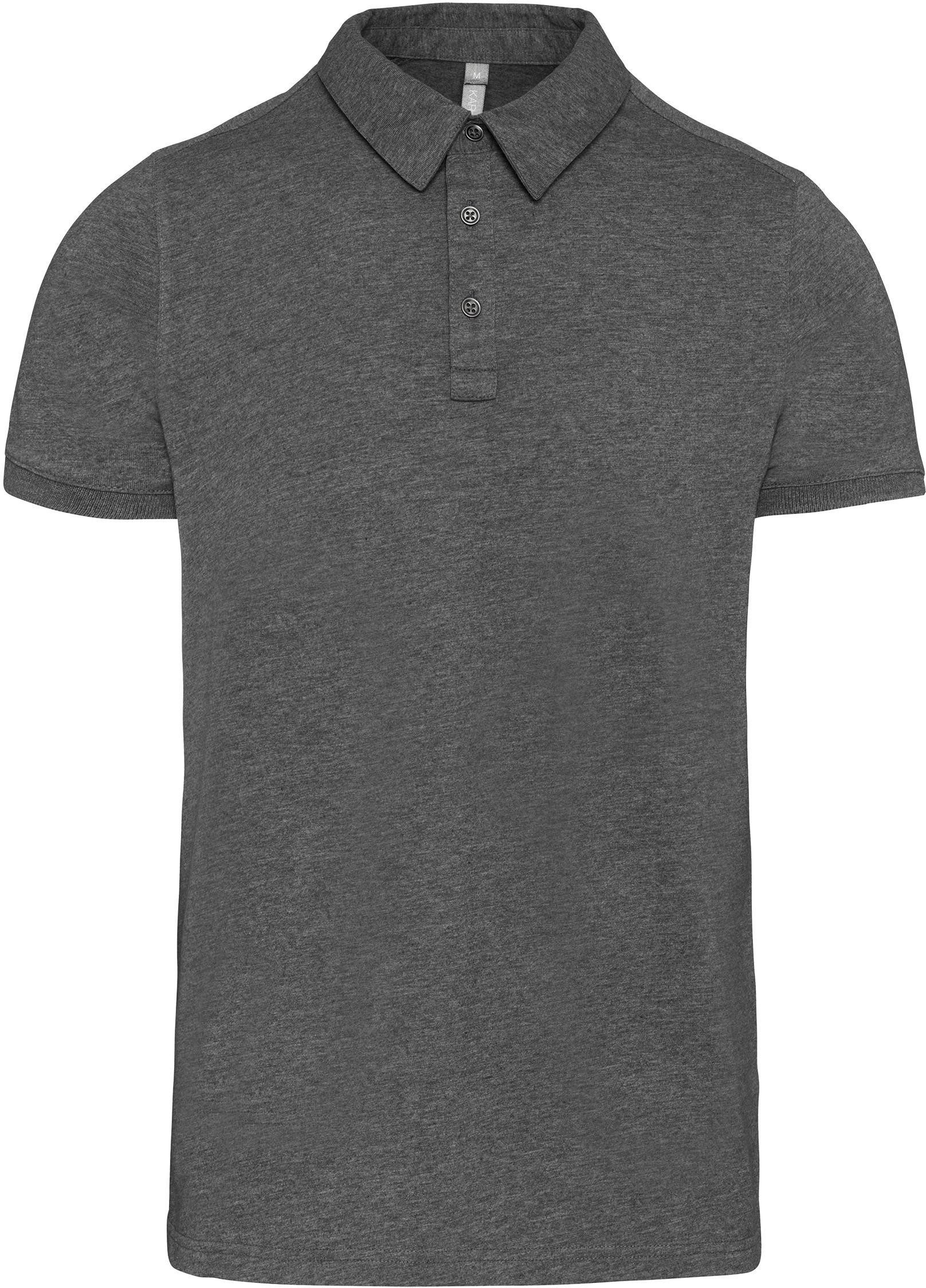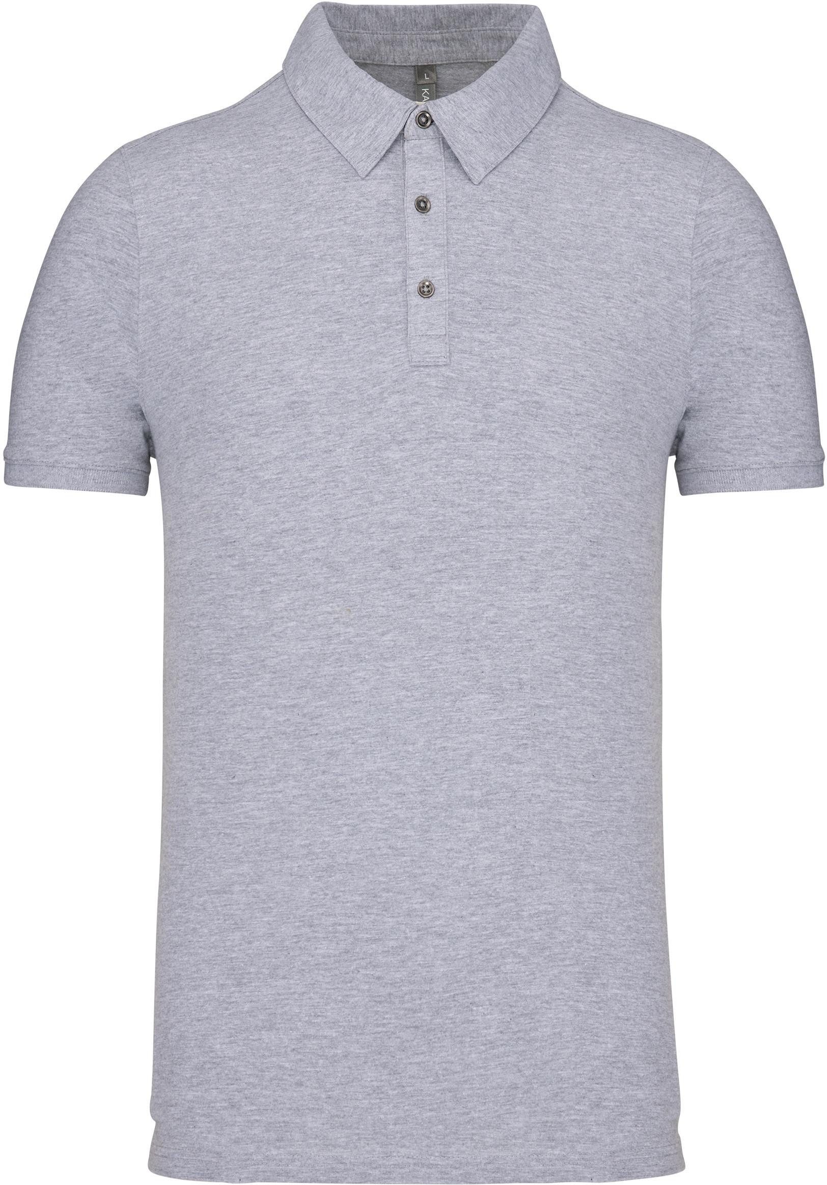 100 % gekämmte Baumwolle (French Navy Heather : 80% Baumwolle / 20% Polyester - Grey Heather : 65% Polyester / 35% Baumwolle - Oxford Grey : 90% Baumwolle / 10% viskose). Jerseytrikot. Hemdkragen. Knopfleiste mit 3 Metallknöpfen. Passe auf der Schulter. Strickbündchen am Ärmelsaum. Doppelnaht am unteren Saum.