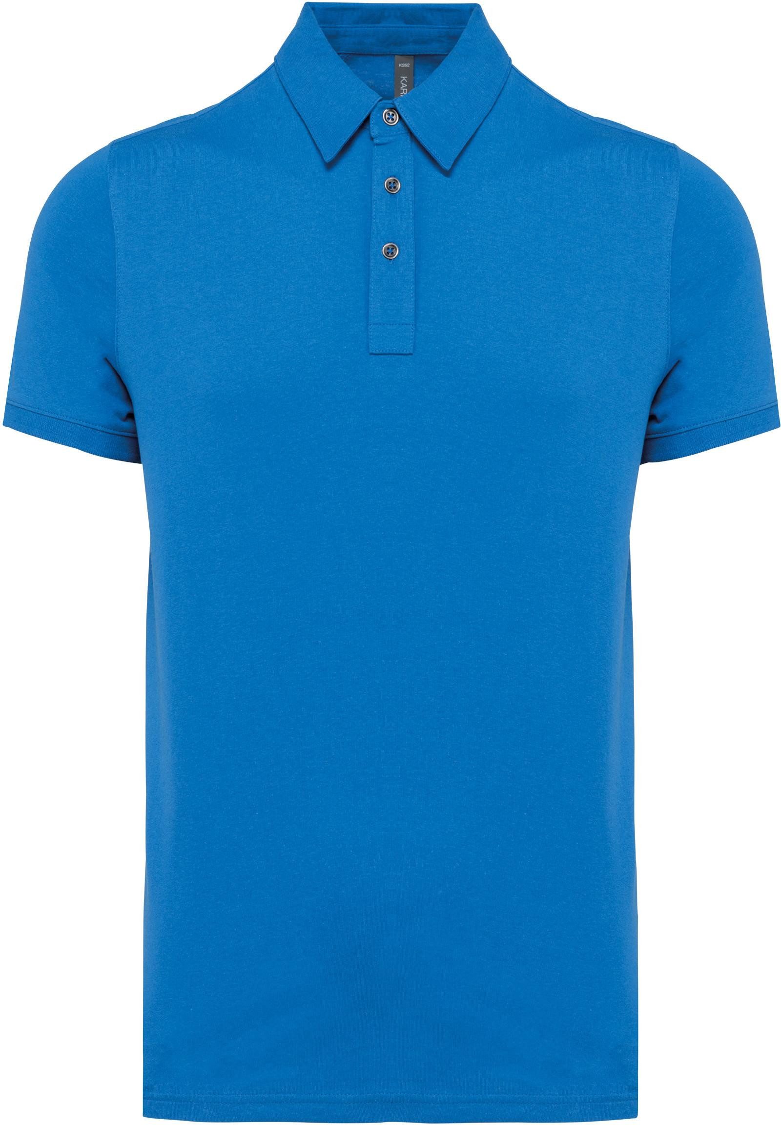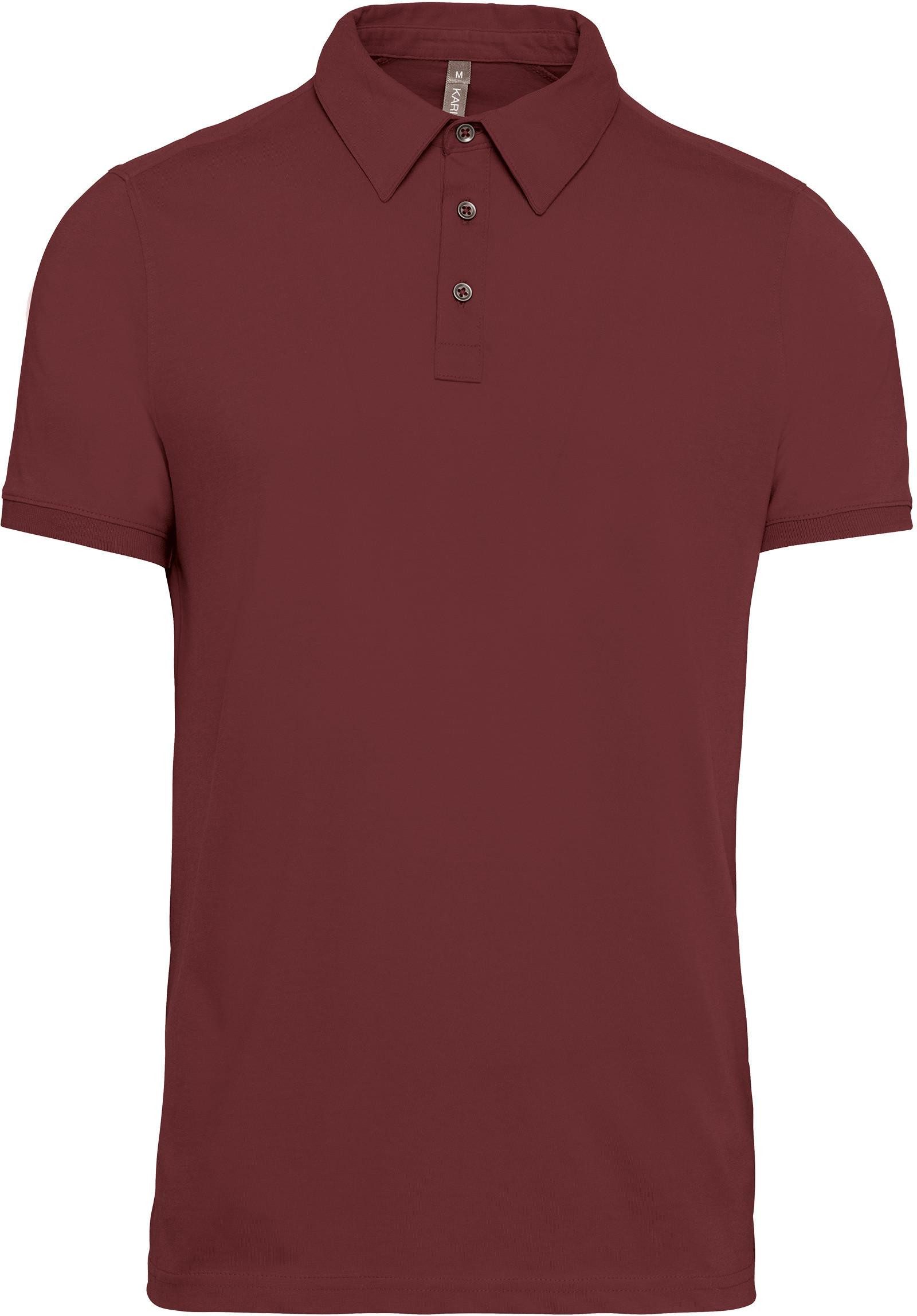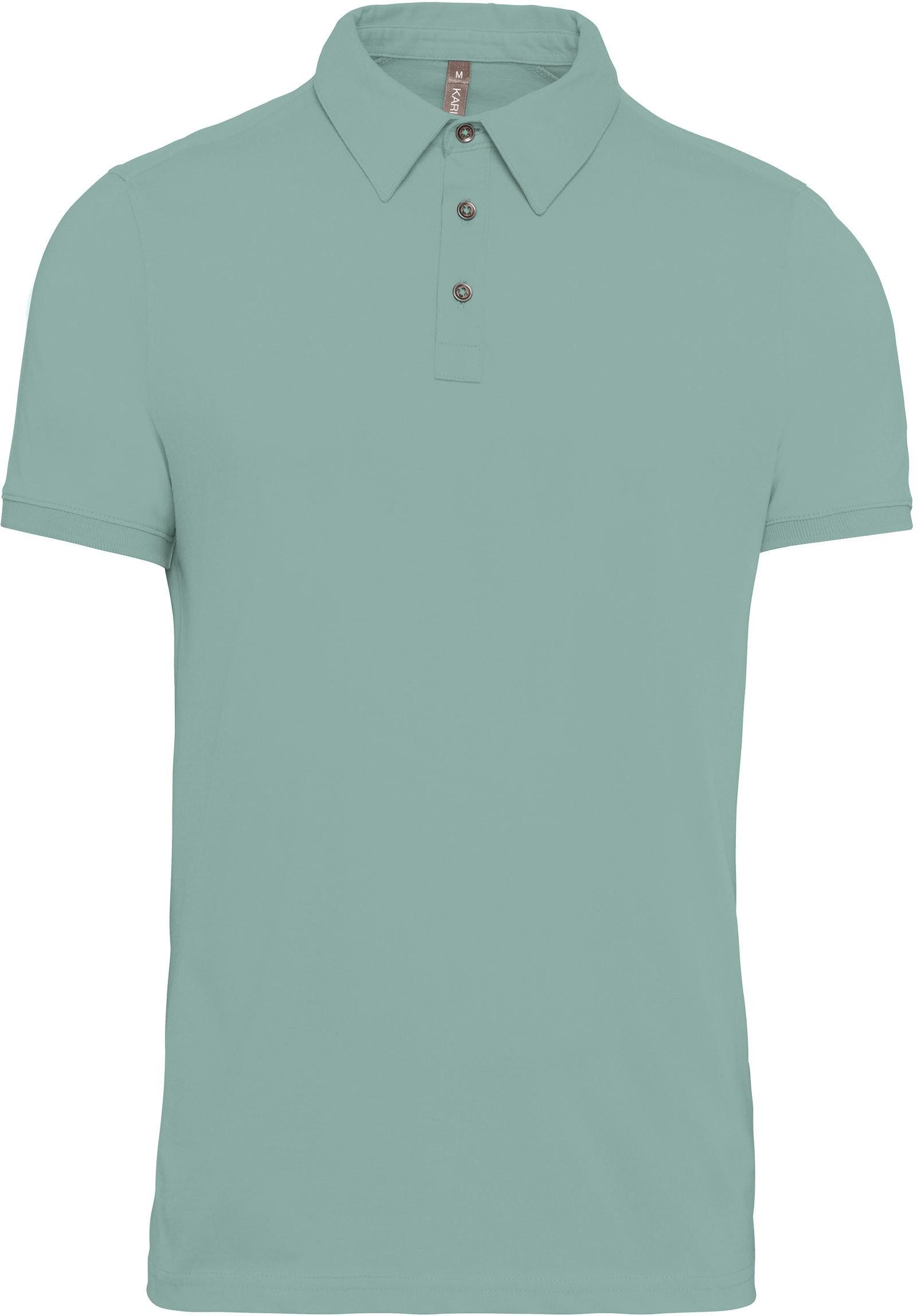 100 % gekämmte Baumwolle (French Navy Heather : 80% Baumwolle / 20% Polyester - Grey Heather : 65% Polyester / 35% Baumwolle - Oxford Grey : 90% Baumwolle / 10% viskose). Jerseytrikot. Hemdkragen. Knopfleiste mit 3 Metallknöpfen. Passe auf der Schulter. Strickbündchen am Ärmelsaum. Doppelnaht am unteren Saum.