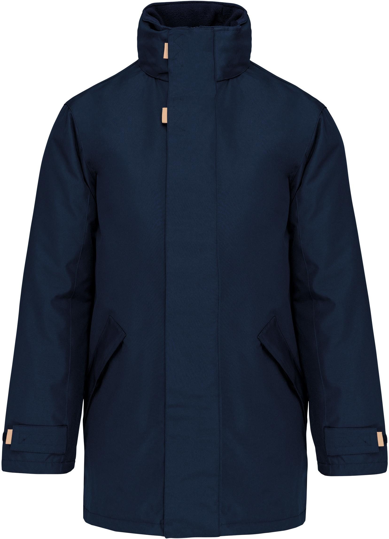 Außenmaterial: 100% Oxford-Polyester. Futter und Wattierung 100% Polyester. Klettverschluss-Kinnschutz, Full Zip mit Windschutzleiste und Klettverschluss. Große Innentasche mit Klettverschluss. Hoch schließender Kragen mit Fleece-Futter und versteckter Kapuze. 2 Reißverschlusstaschen vorne. Innen Handytasche mit Klettverschluss. Ärmelverstellung mittels Klettverschlüssen. Reißverschluss für Veredelungszugang mittels Reißverschluss.