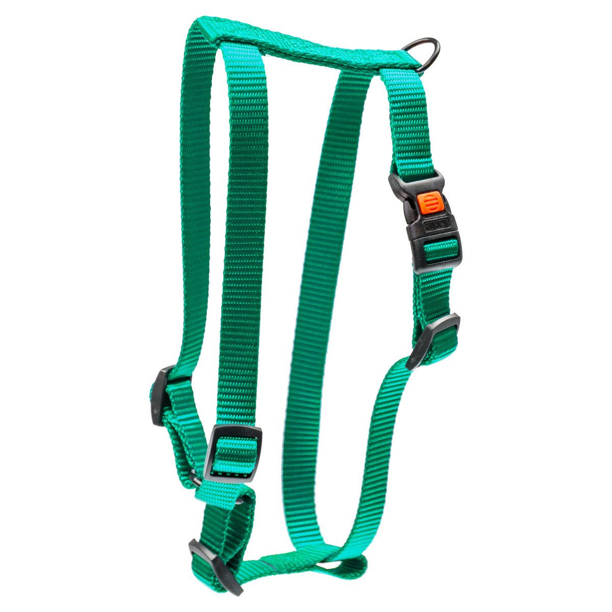 Die Geschirre der Mix and Match Serie kommen in 8 Basic-Farben. Sie sind aus weichem, robustem Nylonmaterial gefertigt und somit äußerst widerstandsfähig, langlebig und leicht zu reinigen. Der Brust- und der Bauchgurt lassen sich stufenlos verstellen und somit perfekt an die Körperproportionen des Hundes anpassen. Durch eine stabile Sicherheits-Steckschnalle, inkl. Safety-Lock sind sie einfach zu öffnen und zu schließen. Außerdem sind sie mit einem belastbaren D-Ring zum Befestigen der Leine ausgestattet. Die Beschläge in Schwarz geben ihr einen modernen Look.