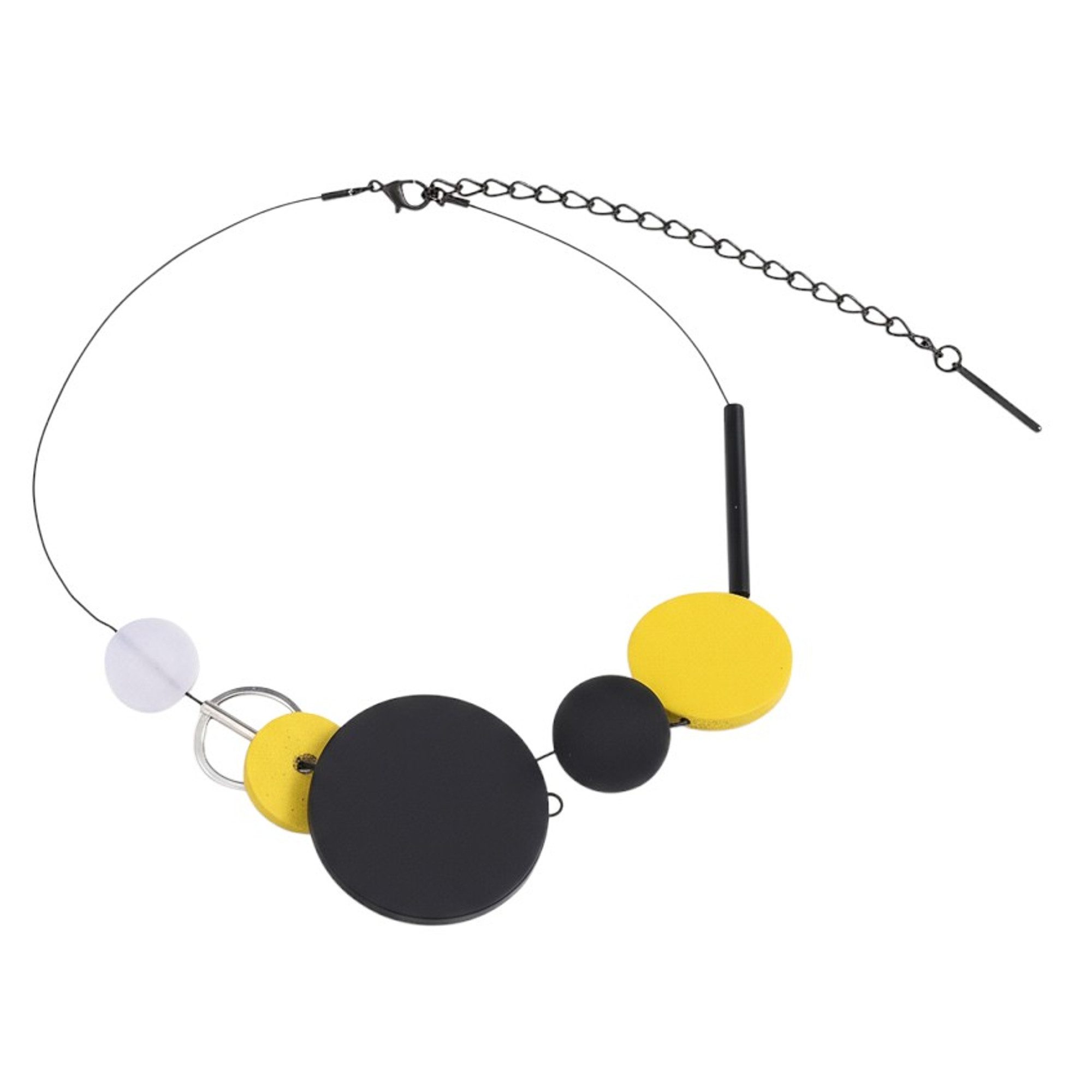 Diese Halskette kombiniert runde, matte und glänzende Elemente aus Holz und hochwertigem Kunststoff zu einem modernen Design, das jedes Outfit sofort interessanter wirken lässt.