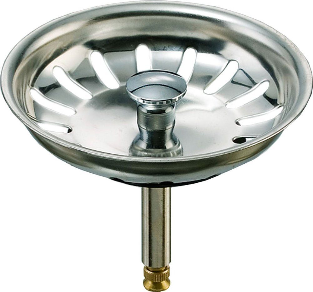 Siebkorb aus Edelstahl mit Hubstange und Gummidichtung für Küchenspülen mit 3 1/2 Zoll Ablauf und Excenterbedienung.