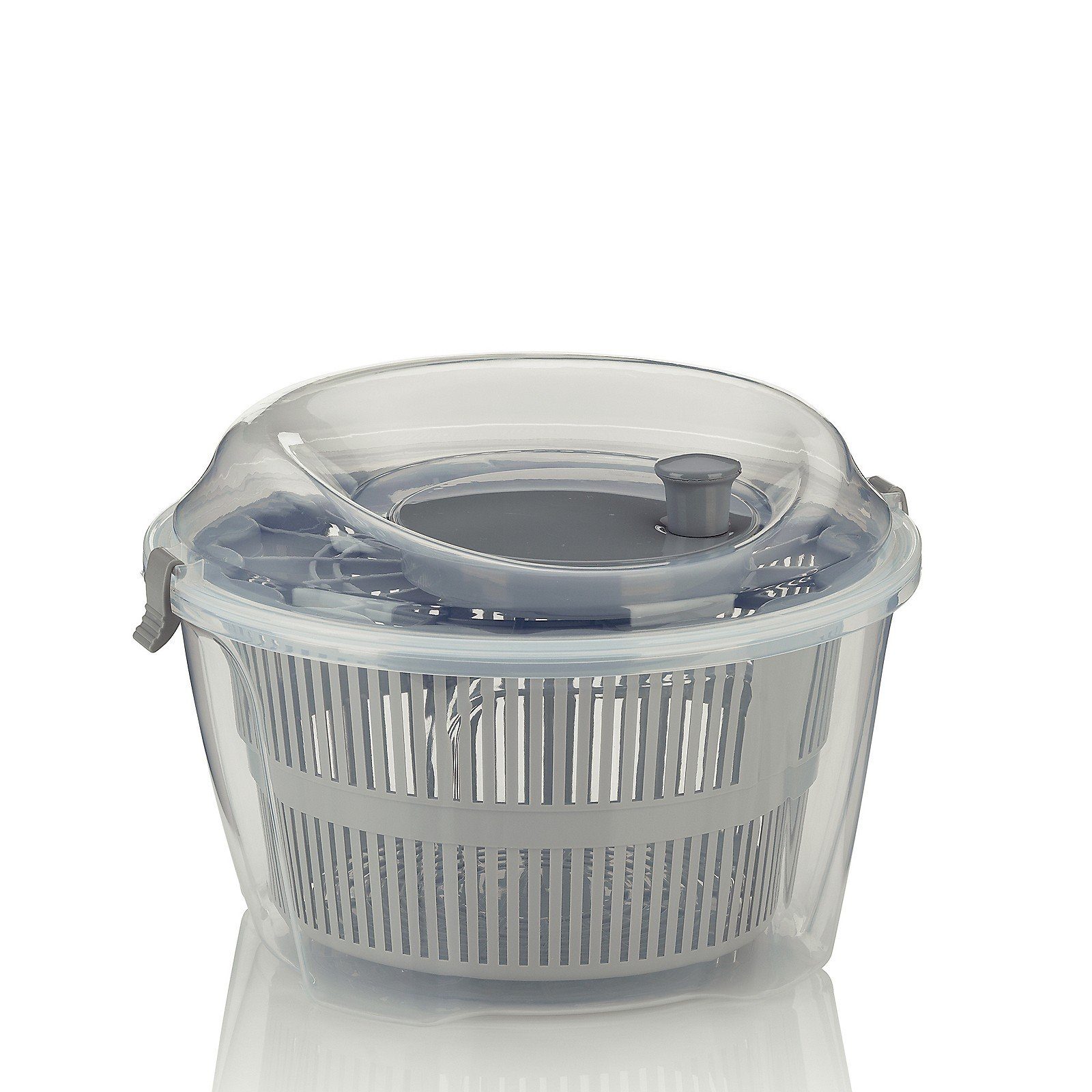 Das Design dieser Salatschleuder ist jung und frech die Farben frisch. Passt perfekt zu einem gesunden, vitaminreichen Salat. Dank der einfach Handhabung können Sie Kopfsalat, Eisberg und Lollo Rosso noch eine extra Schleudertour gönnen: Salat rein, Deckel drauf, Klammern schließen und drehen. Das Ergebnis ist ein gut trocken geschleuderter Salat, der sich so viel besser mit dem Salatdressing verbindet.