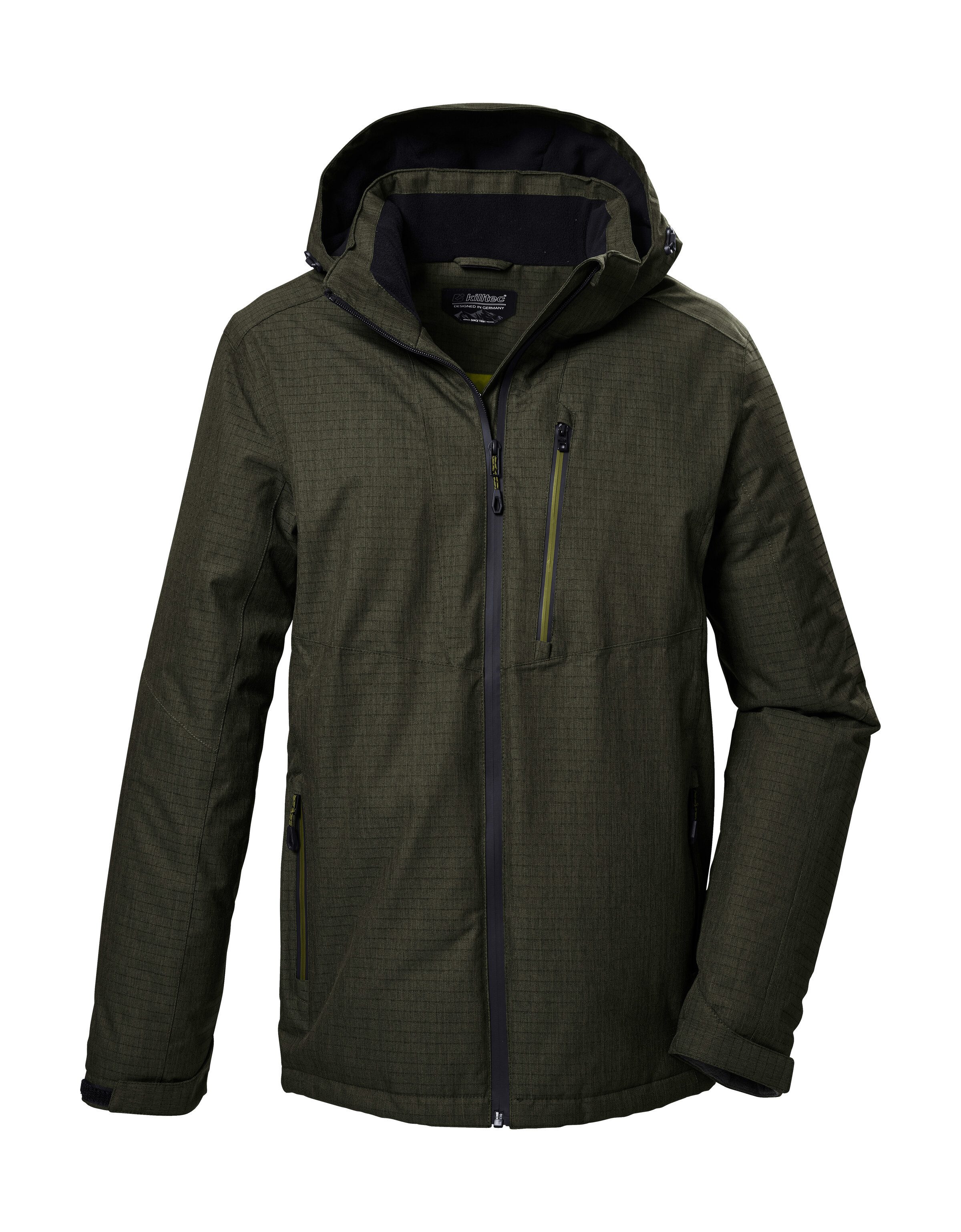 Die killtec Herren Funktionsjacke in Melange Optik ist nicht nur bei Outdoor-Aktivitäten, sondern auch in der City der perfekte Begleiter. Die Jacke hat verschweißte Nähte und ist mit einer 10.000 mm Wassersäule wasser- und winddicht (Unser Tipp: Damit die Wasserdichtigkeit erhalten bleibt, empfehlen wir, die Jacke ab und zu neu zu imprägnieren). Zugleich ist die Jacke atmungsaktiv (3.000 g/m²/24 h). Die Jacke hat eine Handytasche sowie zwei Seitentaschen und eine Brusttasche, die mit Zippern verschließbar sind. Die Kapuze lässt sich regulieren oder bei Bedarf ganz abnehmen. Die Ärmelbündchen lassen sich anhand von Klettverschlüssen verstellen. Der laminierte Reißverschluss ist mit einem praktischen Kinnschutz ausgestattet. Diese Jacke wurde mit fluorfreien Mitteln imprägniert und teilweise aus recyceltem Material hergestellt