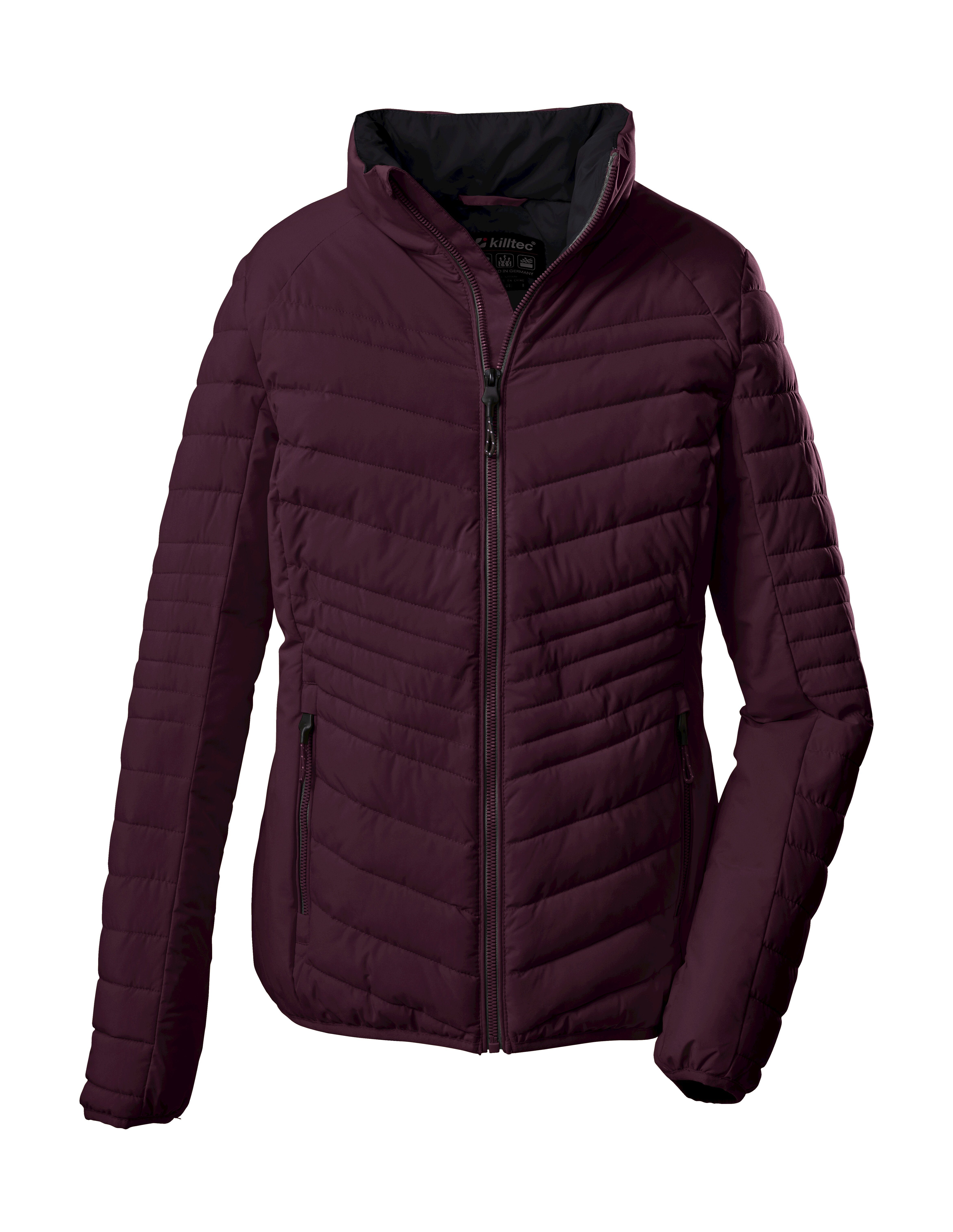 Die killtec Outdoorjacke in Daunenoptik und mit Stehkragen ist ein zuverlässiger Begleiter in der kühleren Jahreszeit. Die klassische Jacke wurde durch ihre moderne Steppung verjüngt. Sie ist wasser- und windabweisend mit einer 10.000 mm Wassersäule und gleichzeitig atmungsaktiv mit einer Wasserdampfdurchlässigkeit von 3.000 g/m²/24 h. Die Steppjacke ist mit zwei Seitentaschen mit Zippern ausgestattet. Der Kinnschutz am Frontreißverschluss verhindert ein Einklemmen der Haut. Diese Jacke wurde daher mit fluorfreien Mitteln imprägniert.