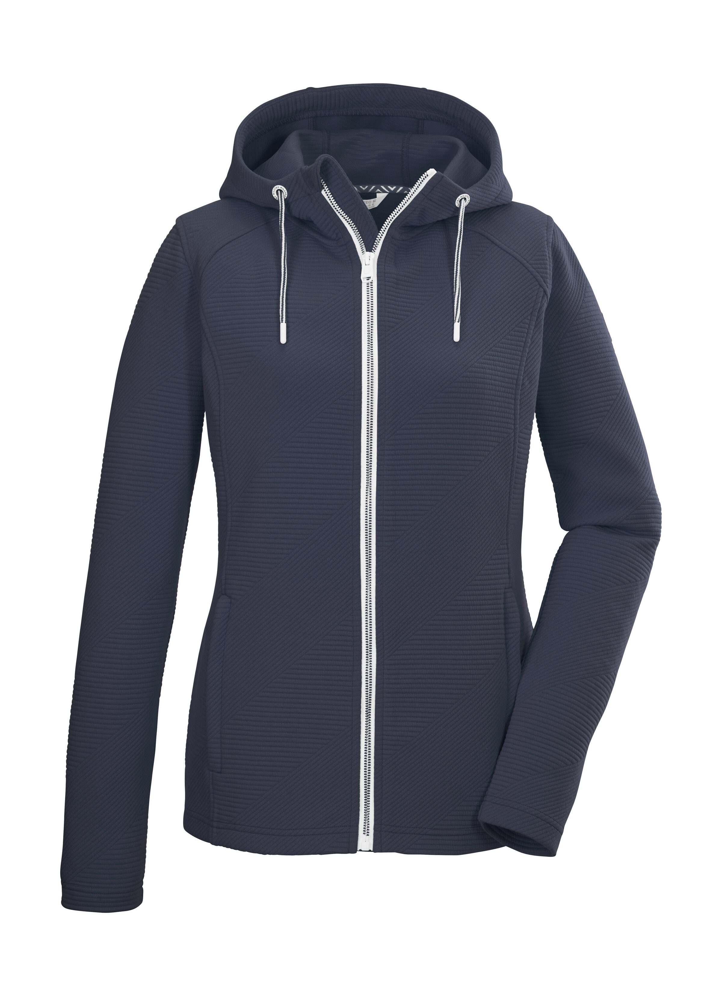 | Besondere Merkmale | Damen Powerstretchjacke mit Kapuze, Taschen, Kinnschutz |