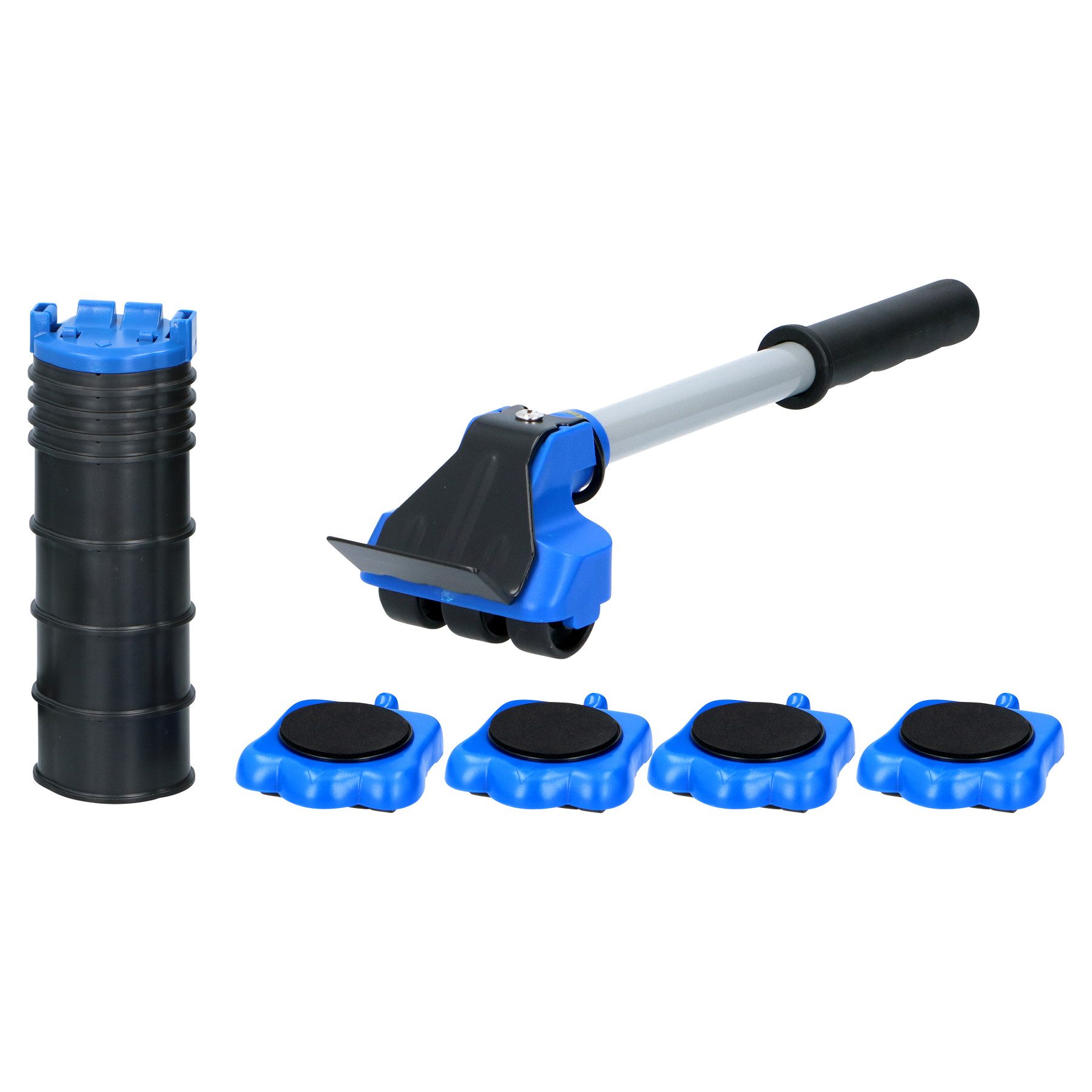 Ein Umzug oder das Umstellen von Möbeln, Waschmaschinen, Kühlschränken und anderen schweren Gegenständen kostet normalerweise viel Muskelkraft. Mit dieser Möbeltransport Set von Kinzo müssen Sie jedoch nicht mehr schwer heben. Der Möbeltransportset besteht aus einem Möbelhebel, 4 Möbelrollen und 8 Höhenblöcken. Mit Hilfe des Hebels können Sie die Möbel oder andere schwere Gegenstände einfach ein Stück anheben, um dann an jeder Ecke eine Rolle zu platzieren. Befinden sich Beine unter den Möbeln, heben Sie mit den Höhenblöcken die Möbel mit der Hebehilfe so weit an, dass Sie unter jedes Bein eine Rolle schieben können. Mit den 4 Rollen unter den Beinen können Sie das Möbelstück durch einfaches Einrollen leicht bewegen. Anschließend entfernen Sie auf die gleiche Weise die Rollen. Diese Möbeltransportset ist extrem stark und kann bis zu 1200 Kilo heben.