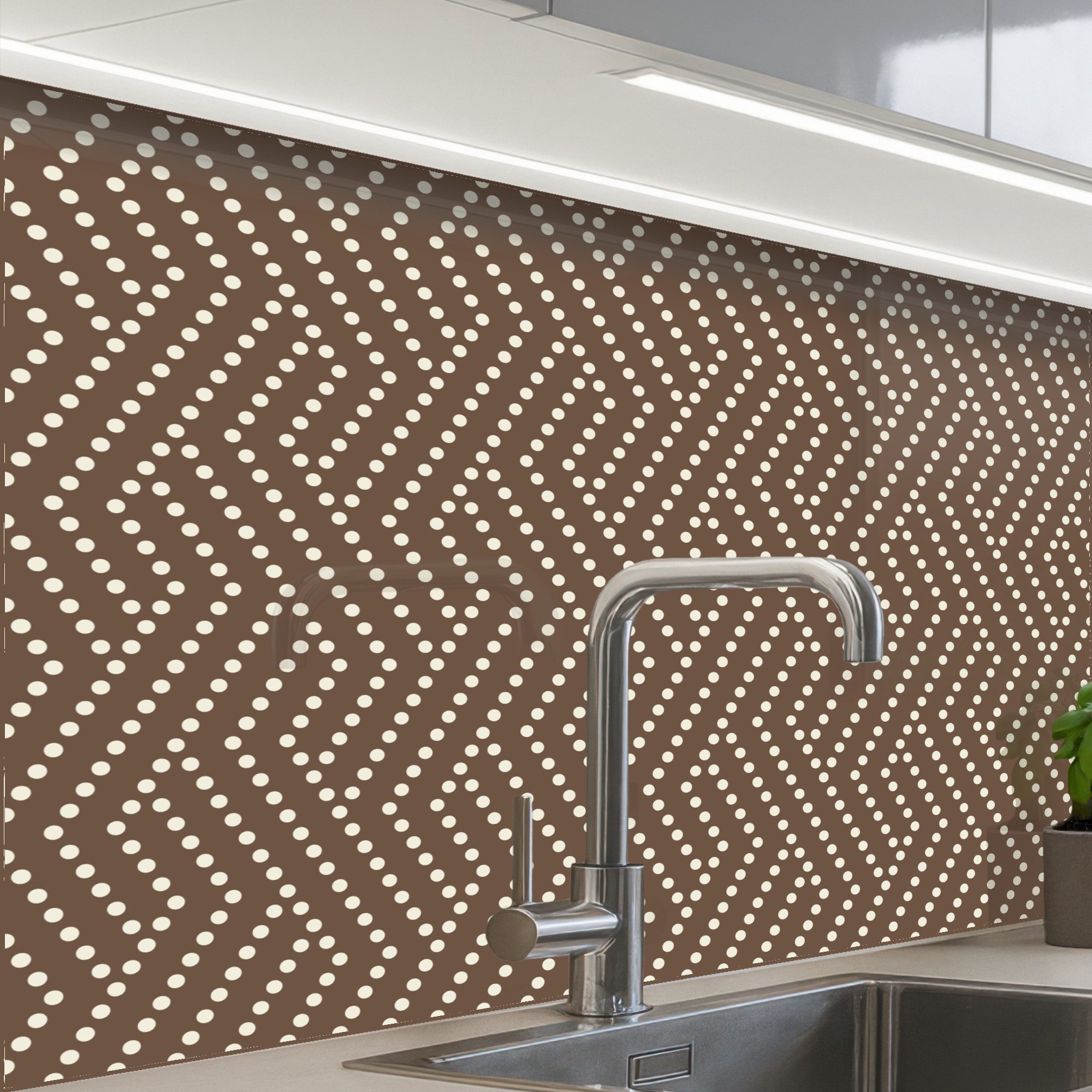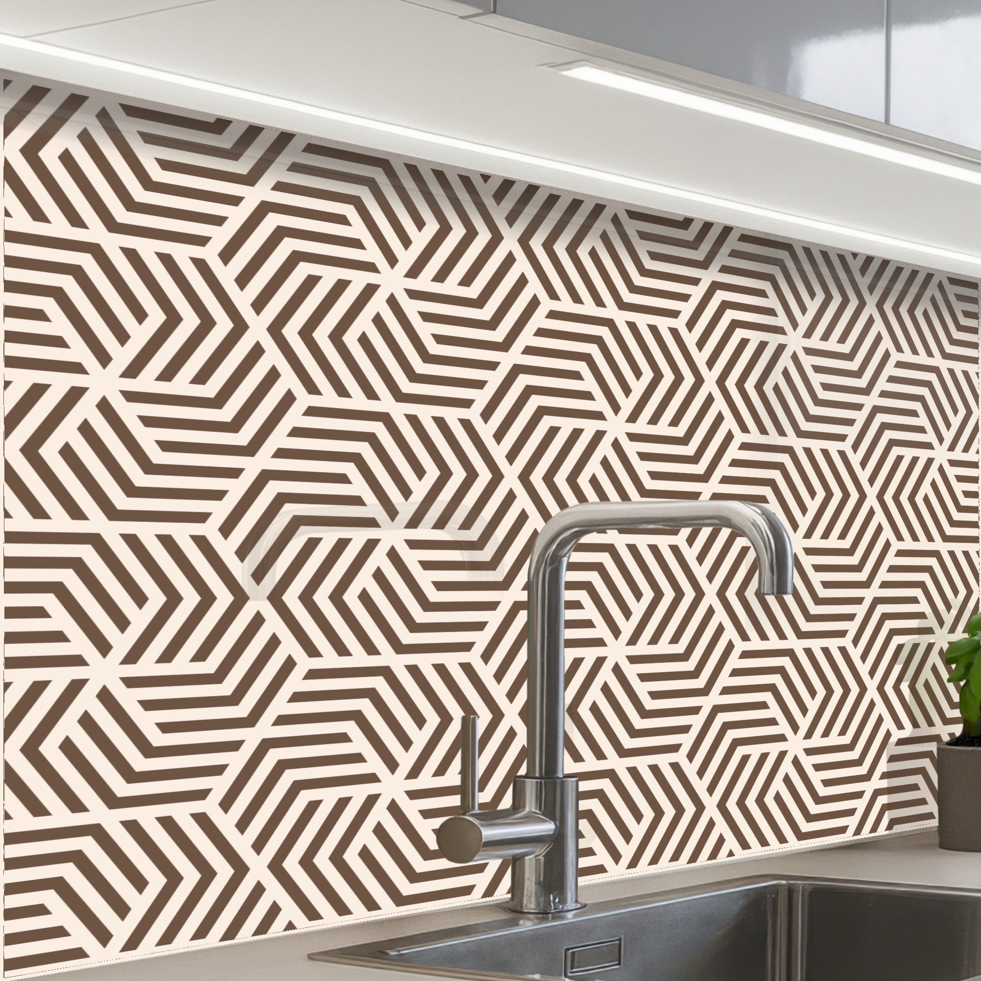 Diese Küchenrückwand fügt sich in moderne, klassische und minimalistische Stile ein und wertet Ihre Küche sofort auf. Sie ist auf Fliesen, Putz und gestrichenen Wänden problemlos einsetzbar.