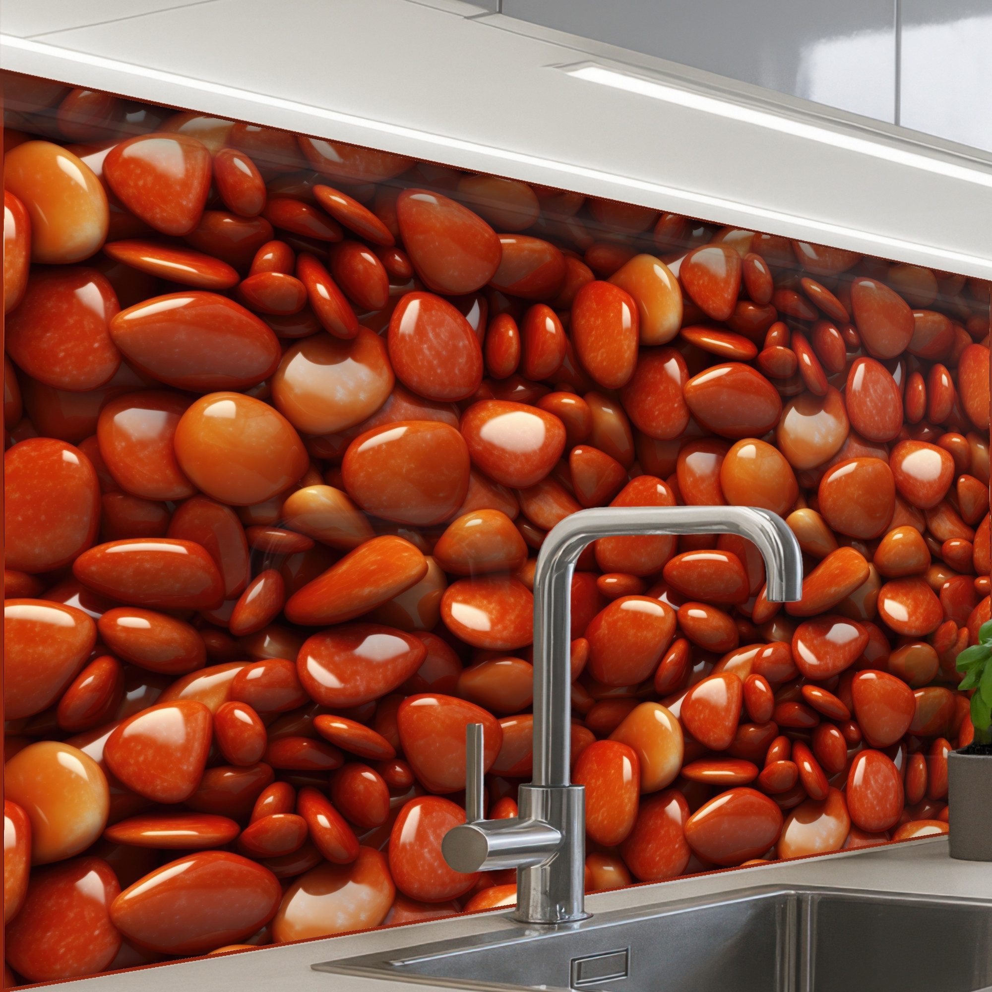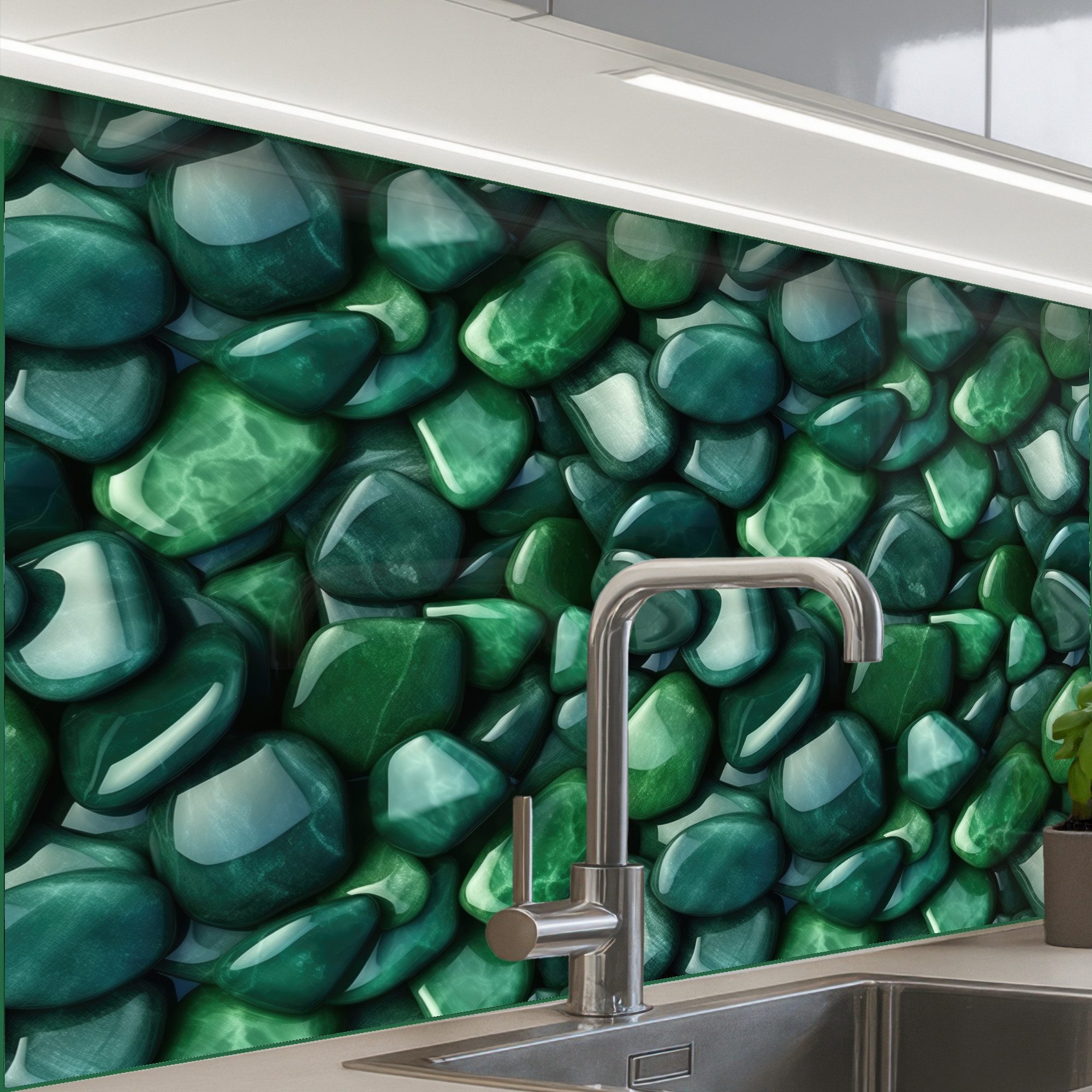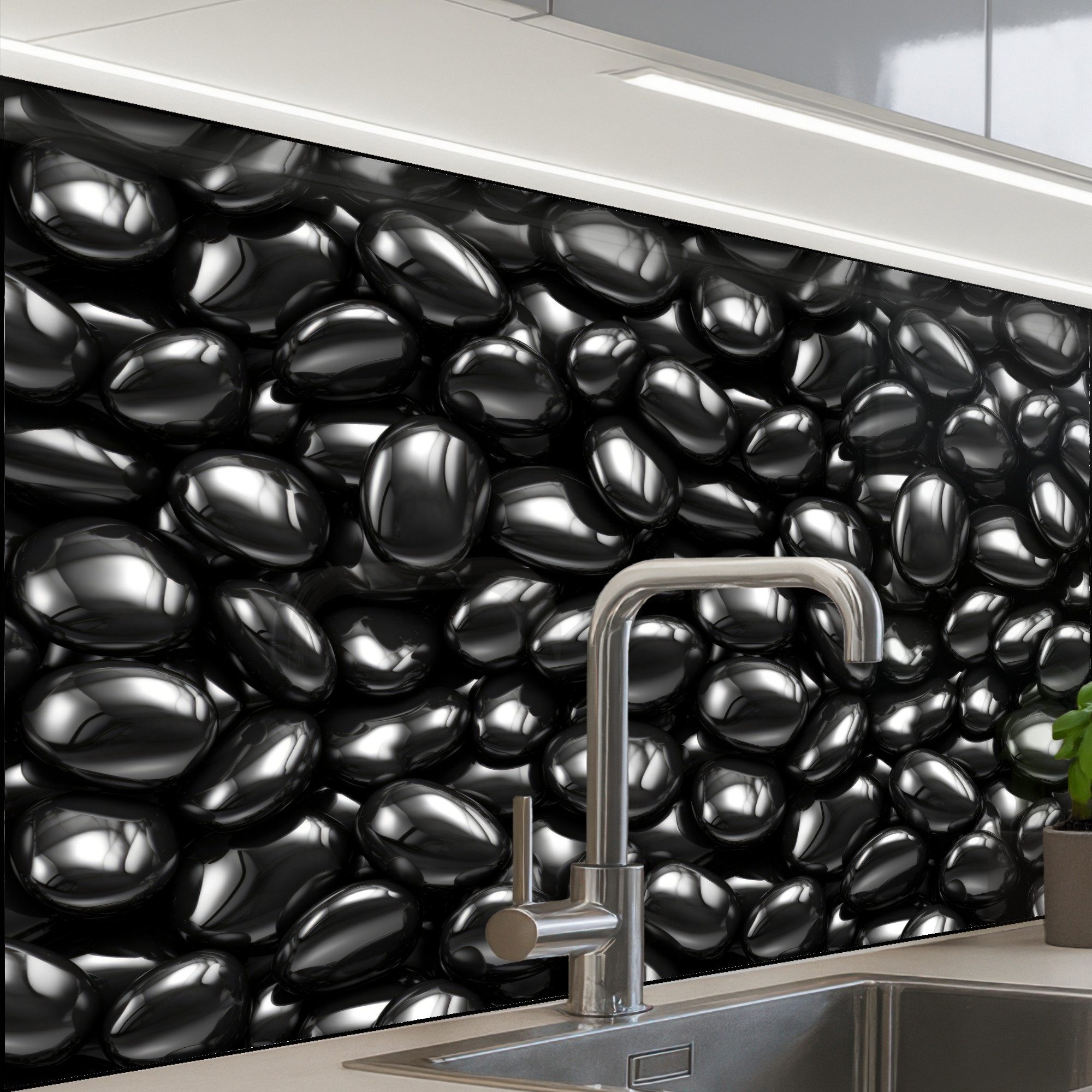 Die Küchenrückwand besteht aus strapazierfähigem, PVC-freiem Material, das hitzebeständig, wasserabweisend und UV-beständig ist. Die Glasoptik sorgt für einen modernen und eleganten Look, ohne die Bruchgefahr von echtem Glas.