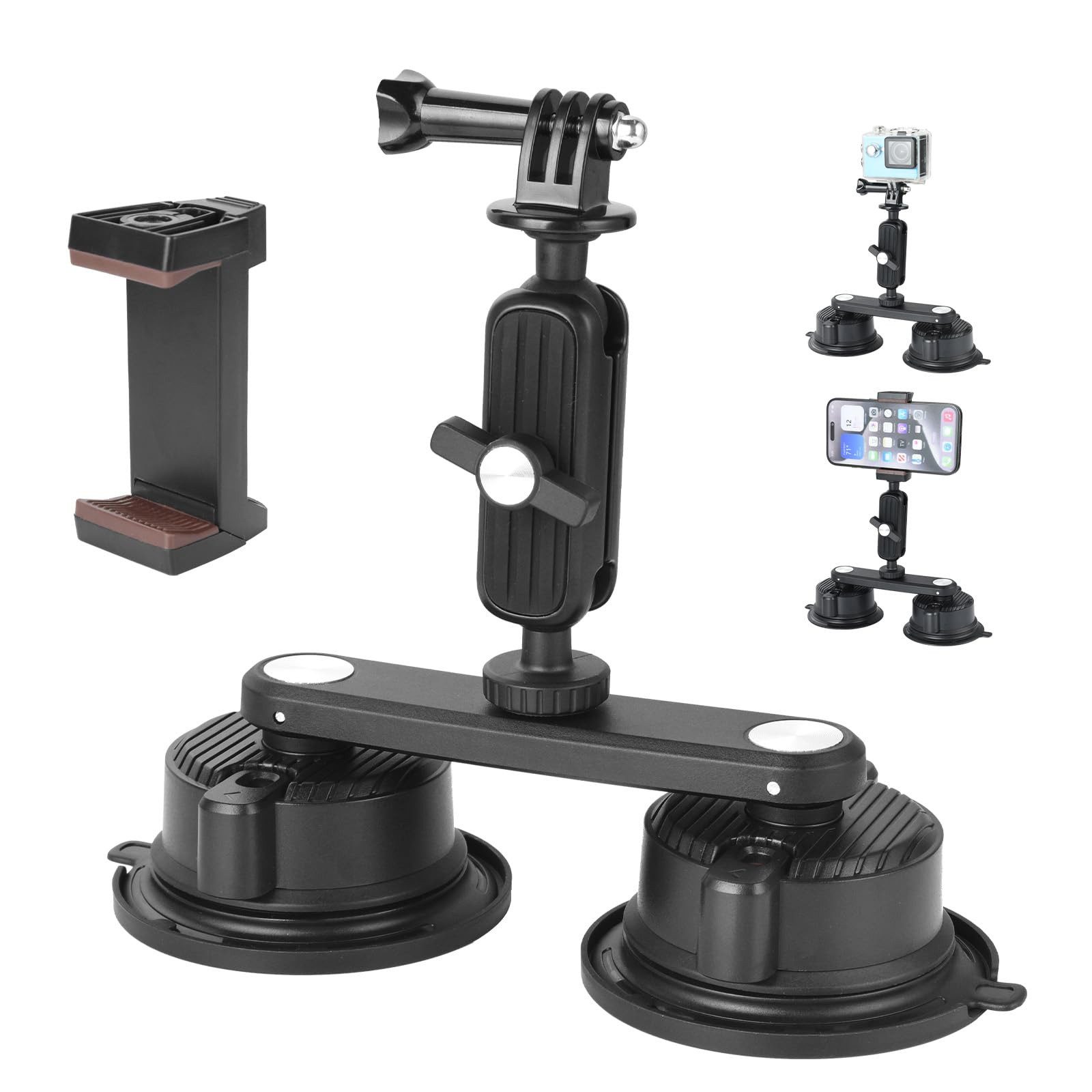 Ob auf der Autobahn oder beim Filmen im Gelände – mit dieser robusten Saugnapfhalterung bleibt Ihre Kamera sicher an Ort und Stelle. Das innovative Doppelsaugnapf-System mit zusätzlicher Verriegelung bietet eine außergewöhnliche Stabilität – ideal für actionreiche Aufnahmen während der Fahrt. Dank der vielseitigen Kompatibilität eignet sich die Halterung für Smartphones, Action-Kameras und leichte Kameras mit bis zu 3 kg Gewicht. Besonders praktisch: Das Schnellverschluss-Design erlaubt ein einfaches Anbringen und Entfernen, wodurch keine wertvolle Zeit verloren geht. Die drehbare Doppel-Kugelkopfstruktur ermöglicht Ihnen, den perfekten Winkel für Ihre Aufnahmen zu finden – ganz gleich, ob auf ebenen oder leicht gebogenen Flächen. Die Halterung haftet zuverlässig auf glatten, trockenen Oberflächen wie Autodächern, Motorhauben oder Metallflächen. Ein unverzichtbares Zubehör für Content Creator, Vlogger oder Fahrtenaufzeichnungen – flexibel, sicher und durchdacht bis ins Detail.