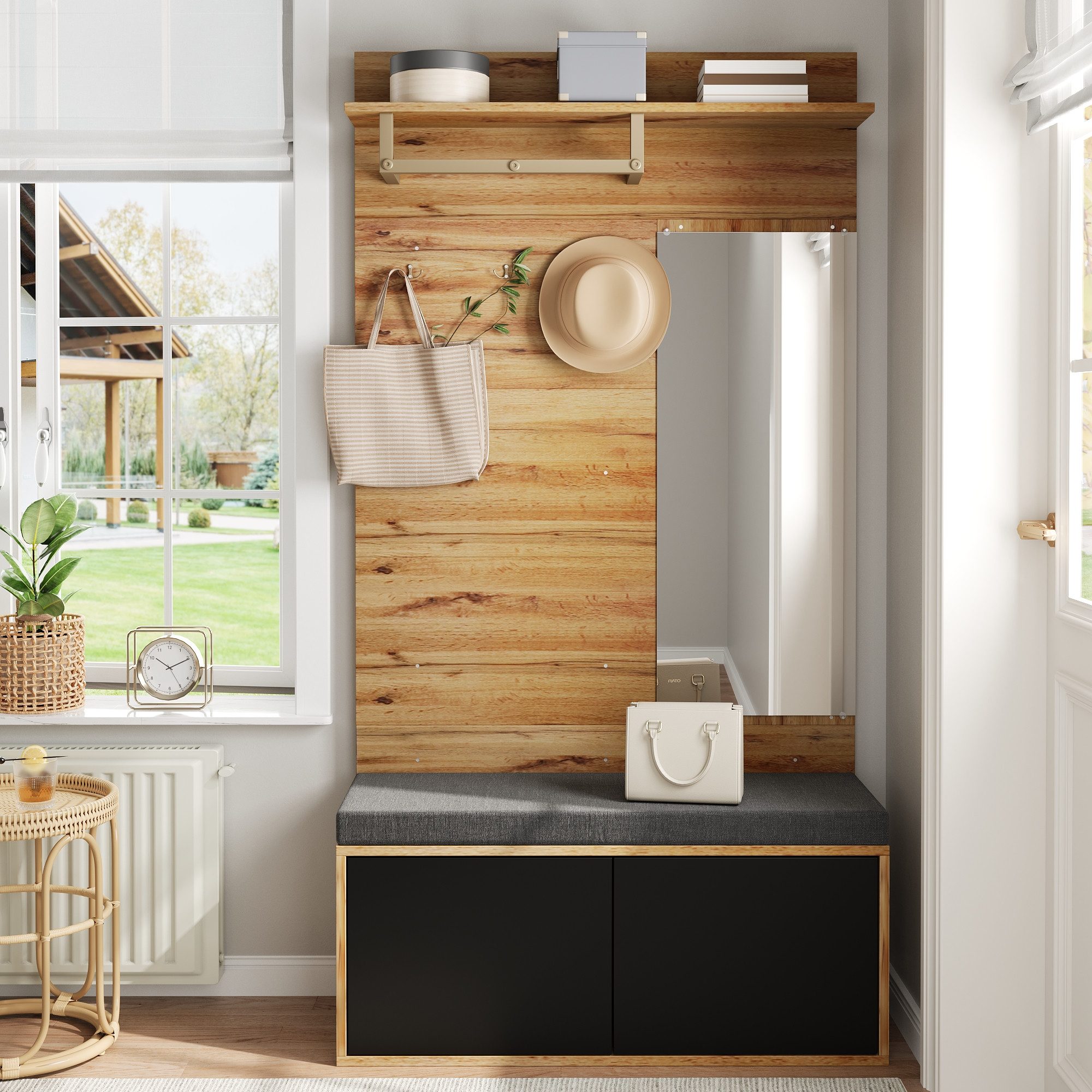 Mit Spiegel, Sitzbank, Schuhschrank und Kleiderhaken bietet dieses Garderobenset eine einzigartige All-in-One-Lösung, die Ihren Alltag vereinfacht und Ihren Wohnraum aufwertet.