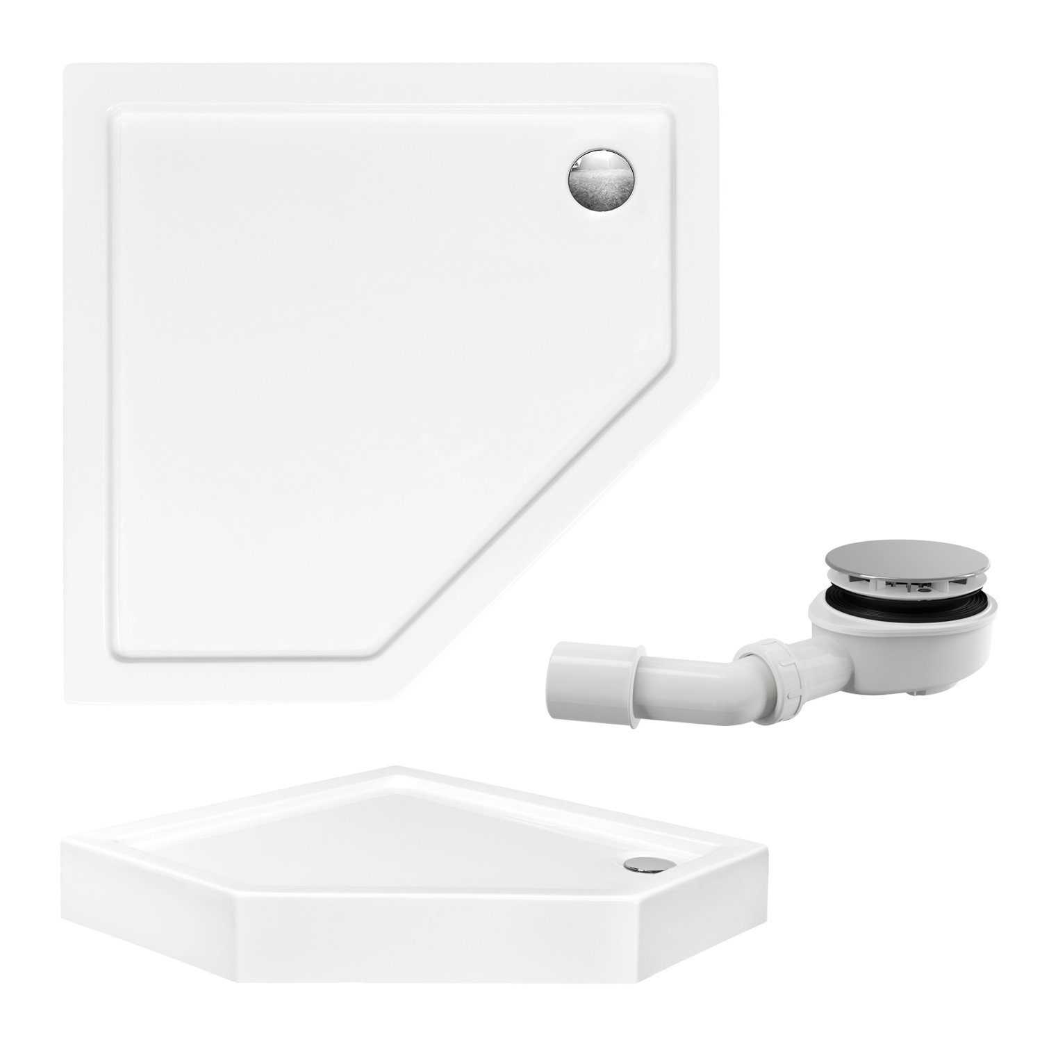 Die Duschwanne ist mit einem hochwertigen Ablauf mit einem Durchmesser von ⌀ 90 ausgestattet, der eine hervorragende Leistung und effiziente Wasserabführung gewährleistet.
