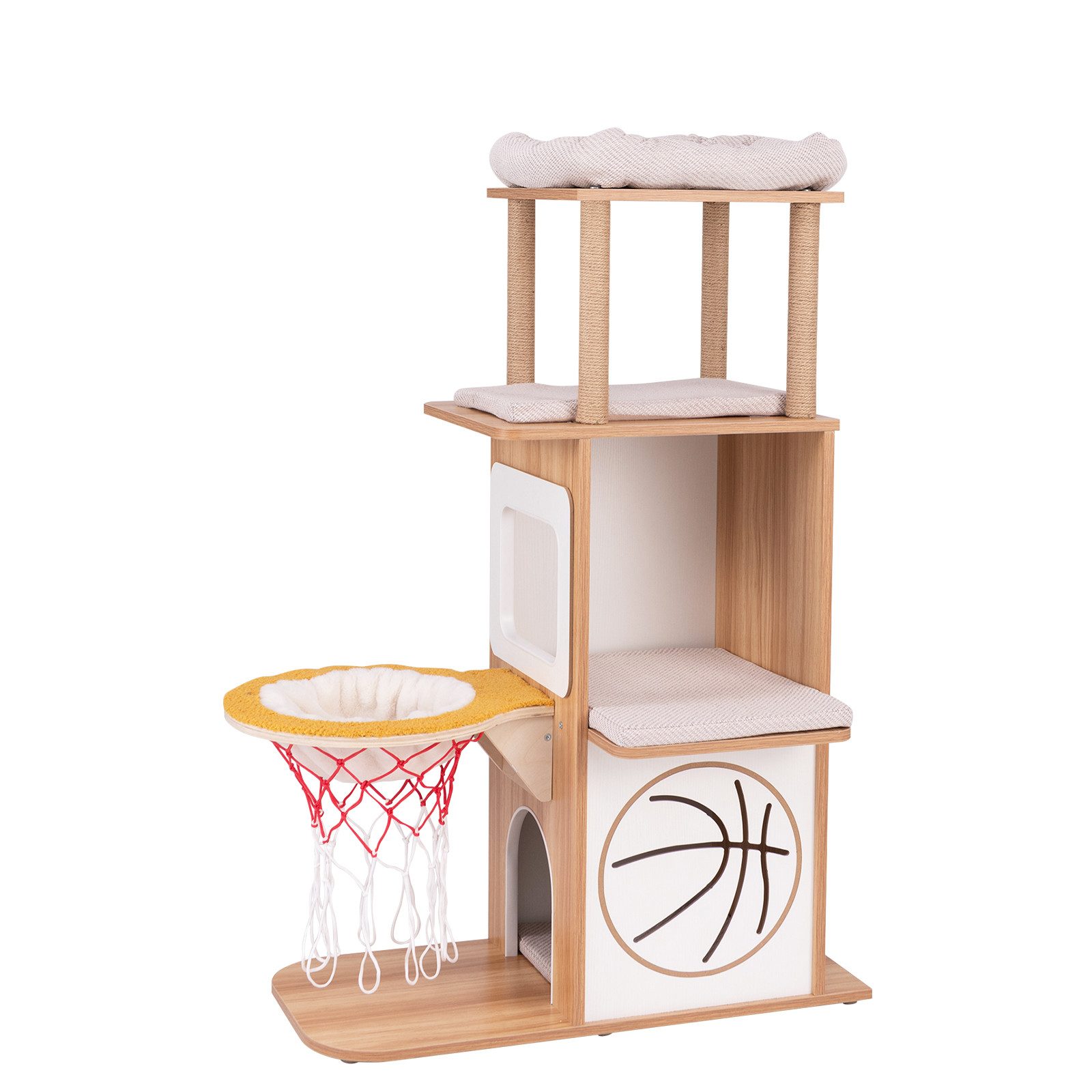 Dieser spaßige Katzenbaum bietet endlosen Komfort und Unterhaltung! Mit einem einzigartigen sportlichen Design inklusive einer Basketball-Hängematte und gemütlichen Katzenhöhlen gibt er Ihren Katzen verschiedene Spiel- und Ruheplätze. Die Plattformen bieten einen herrlichen Ausblick und einen entspannten Rückzugsort. Die umwickelten Kratzsäulen ermöglichen Ihrer Katze Krallenpflege. Abnehmbare und waschbare Kissen in den Höhlen und Plattformen sorgen für Sauberkeit und Gemütlichkeit. Ein idealer Ort für Spiele, Ruhe und Training, perfekt für jeden Katzenhaushalt!