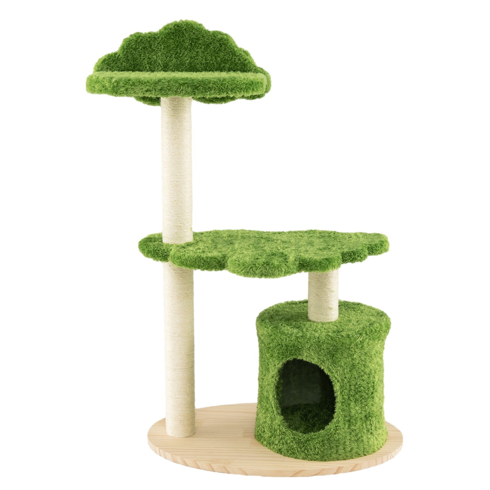 Dieser Kratzbaum ist ein funktionelles Aktivitätszentrum für endlosen Spaß für Ihr Kätzchen. Der Kratzbaum hat einen großen Sockel aus Kiefernholz, der für Stabilität sorgt und den Sprungaktivitäten Ihrer Katze standhält. Die Oberfläche besteht aus hautfreundlichem Plüschstoff für ultimativen Katzenkomfort. Der Kratzbaum mit Sisalseil in der Mitte des Kratzbaums befriedigt den Kratztrieb Ihrer Katze und schützt gleichzeitig Ihre Möbel. Dieser Kratzbaum bietet eine obere Ruheplattform, eine Sprungplattform und eine gemütliche Katzentoilette, was ihn zu einem idealen Unterhaltungsort für Kätzchen, kleine Katzen und große Katzen macht. Dieser Kratzbaum ist einfach zu montieren und mit seiner bezaubernden Form können Sie schnell ein praktisches und schönes Möbelstück für Ihr Haustier in Ihr Zuhause bringen.