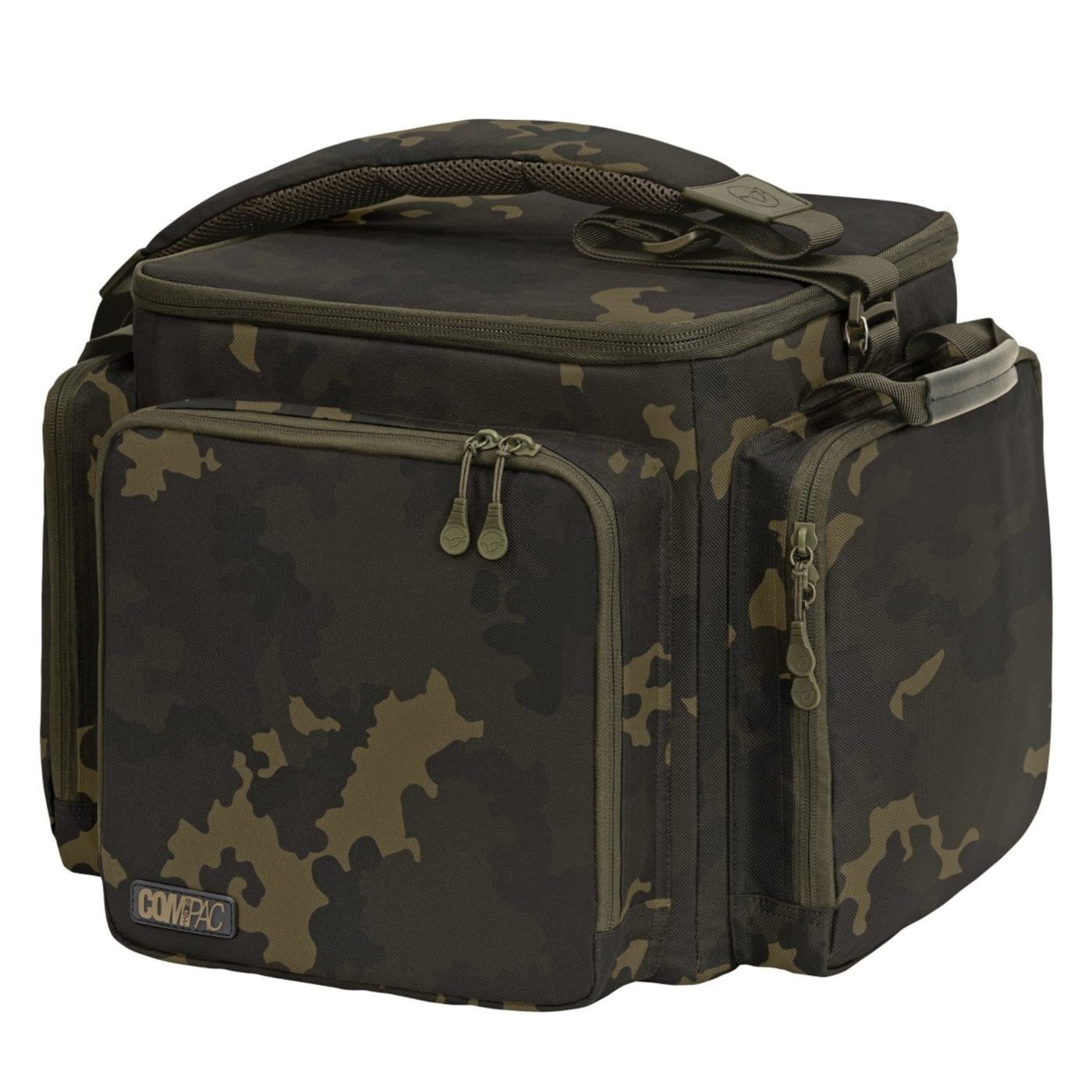 Korda Compac Cube Carryall Dark Kamo - Der Compac Cube Carryall Dark Kamo aus dem Hause Korda ist eine robuste Angeltasche für Karpfentackle. Das stabile und wasserabweisende Gewebe undmit dem verstärkten Boden schützen den Inhalt der Tragetasche effektiv vor Beschädigung und Verschmutzung. Der feste Deckel der Karpfentasche lässt sich auch als Biwak Tisch benutzen, sodass man nicht extra einen zusätzlichen Tisch mitnehmen muss. Das große Hauptfach im Inneren bietet viel Stauraum, während die kleinen Taschen innen und außen Platz für kleine Boxen, Dosen, Marker und Futterracketen bieten. Eine gute Tasche für die schnelle Session mit leichtem Gepäck.