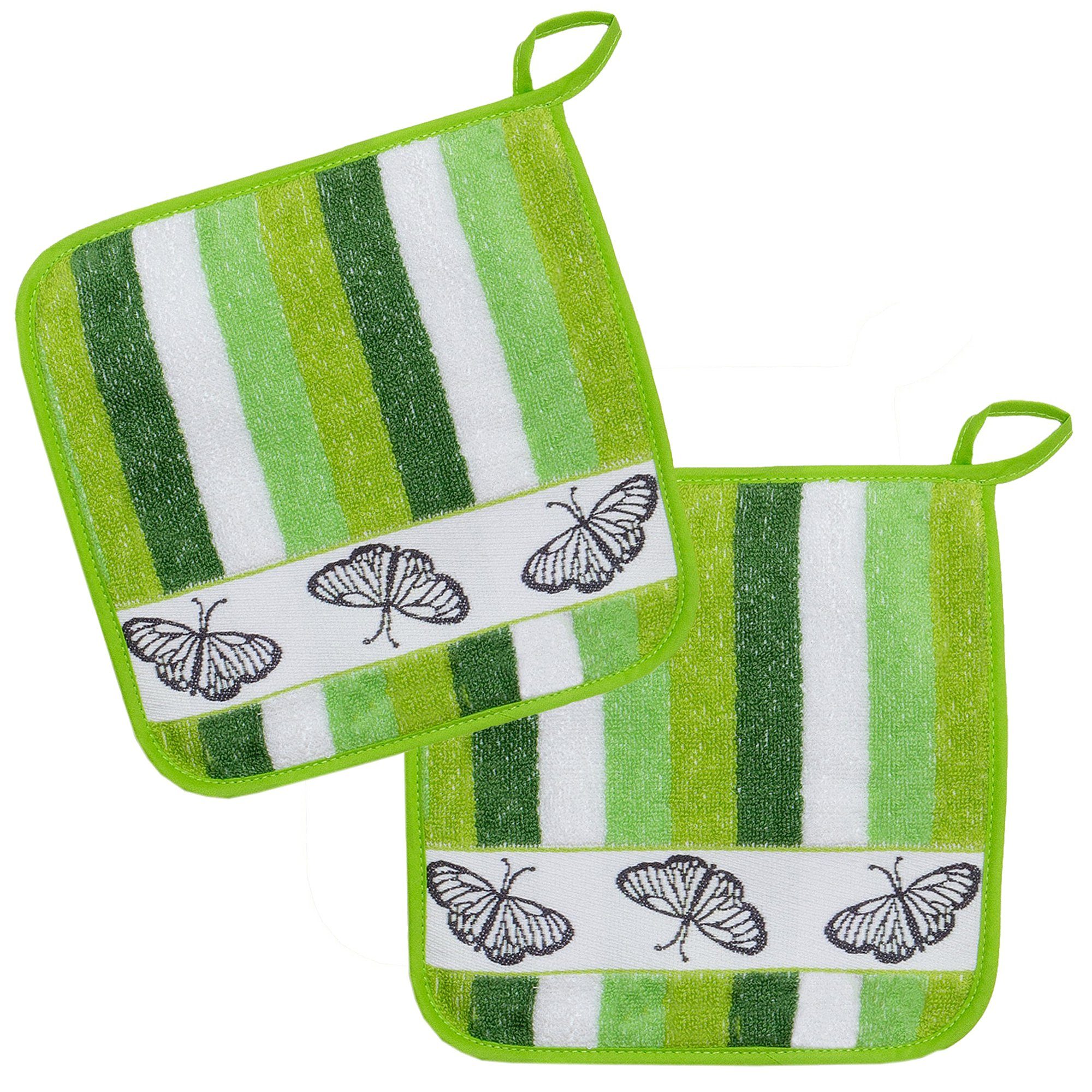 Die Frottiertopflappen sind praktisch, funktional und dekorativ. Die Motive ergänzen wunderbar die Küchenserien. In einer langlebigen und strapazierfähigen Baumwollqualität gewebt. Dekorativ und zweckmäßig, auch als Hitzeschutz unter heißen Auflaufformen verwendbar, mit praktischer Schlaufe zum Aufhängen.
