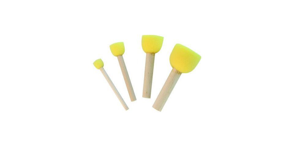 Lockeres Auftupfen der Farbe gelingt Kreativen und Kindern perfekt mit dem Kreul Schwammstumpf-Pinsel. Ideal, um Farbe mit Schablonen aufzutragen oder um mit dem Werkzeug selbst Muster zu gestalten. Der weiche Schwammkopf nimmt nahezu jede Farbe auf, der Holzstiel verhindert das Abrutschen vom Griff. Das Set besteht aus vier Schwammstumpf-Pinseln in unterschiedlichen Größen.