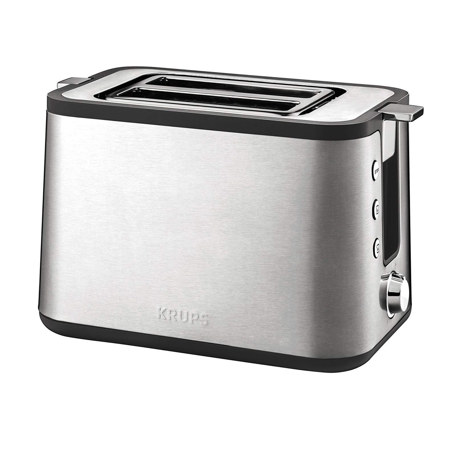 Krups Toaster KH442D Control Line, 6 Bräunungsstufen, herausnehmbare Krümelschublade, 2 kurze Schlitze, für 2 Scheiben, 850 W, integrierter Gebäck- und Brötchenwärmer, Anhebefunktion