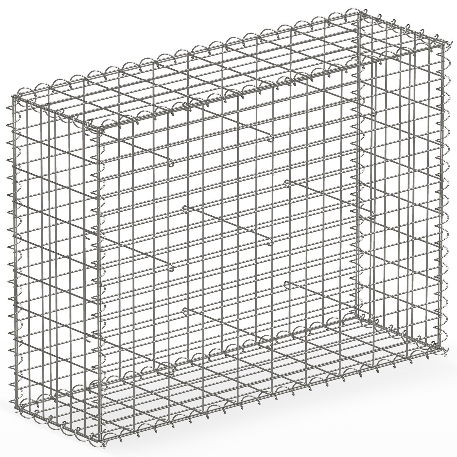 Erhältlich in fünf verschiedenen Größen – 100 x 30 x 30 cm, 100 x 50 x 30 cm, 100 x 50 x 50 cm, 100 x 80 x 30 cm und 100 x 90 x 30 cm – lässt sich der Gabionenkorb „Secura“ flexibel an Ihren Garten oder Ihre Terrasse anpassen. Je nach Modell werden 2 bis 9 Abstandshalterhaken mitgeliefert, die für zusätzliche Stabilität sorgen und ein Aufblähen der Seitenwände zuverlässig verhindern.