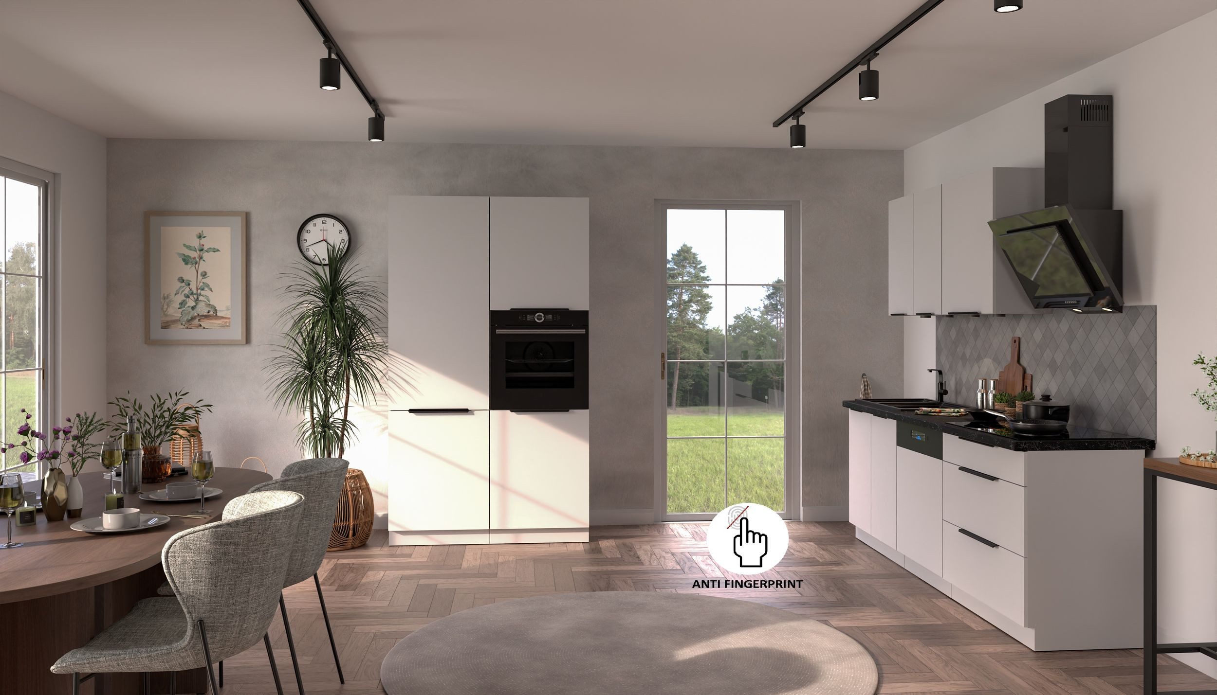 Ästhetik: Anti-Fingerprint-Fronten bietet eine extrem matte Oberfläche. Dadurch wird ein besonders weiches und angenehmes Soft-Feeling erzeugt. Oberflächen behalten länger ihr hochwertiges Aussehen, da unschöne Flecken reduziert werden.