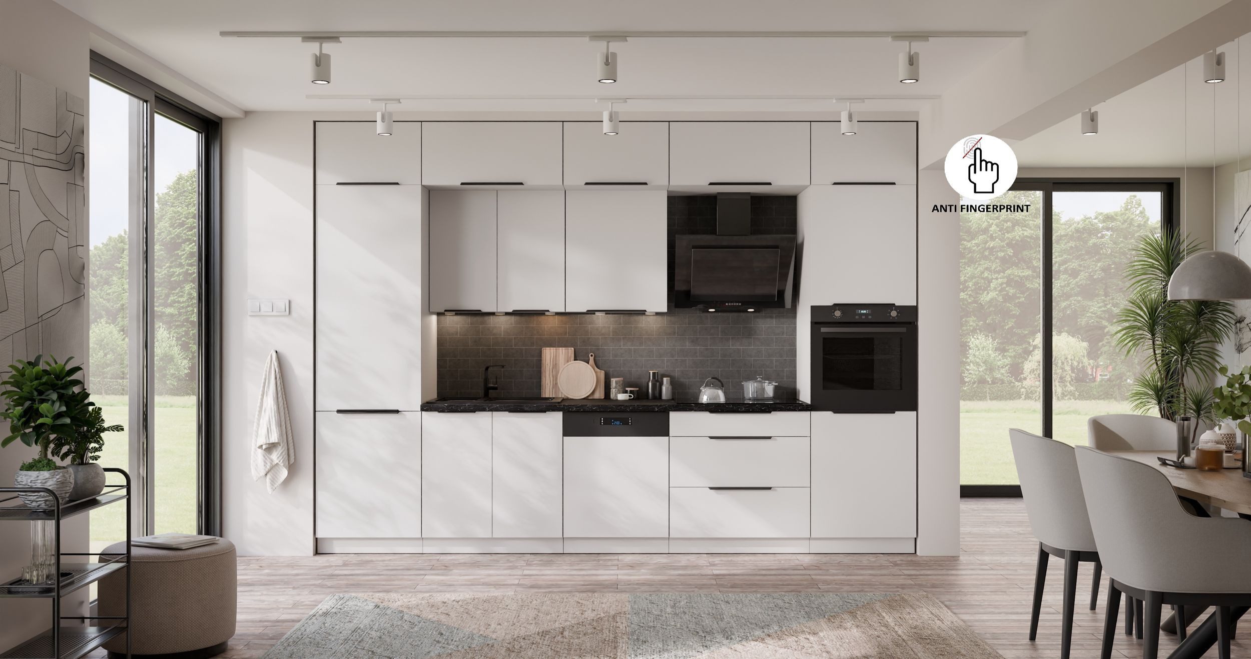 Ästhetik: Anti-Fingerprint-Fronten bietet eine extrem matte Oberfläche. Dadurch wird ein besonders weiches und angenehmes Soft-Feeling erzeugt. Oberflächen behalten länger ihr hochwertiges Aussehen, da unschöne Flecken reduziert werden.