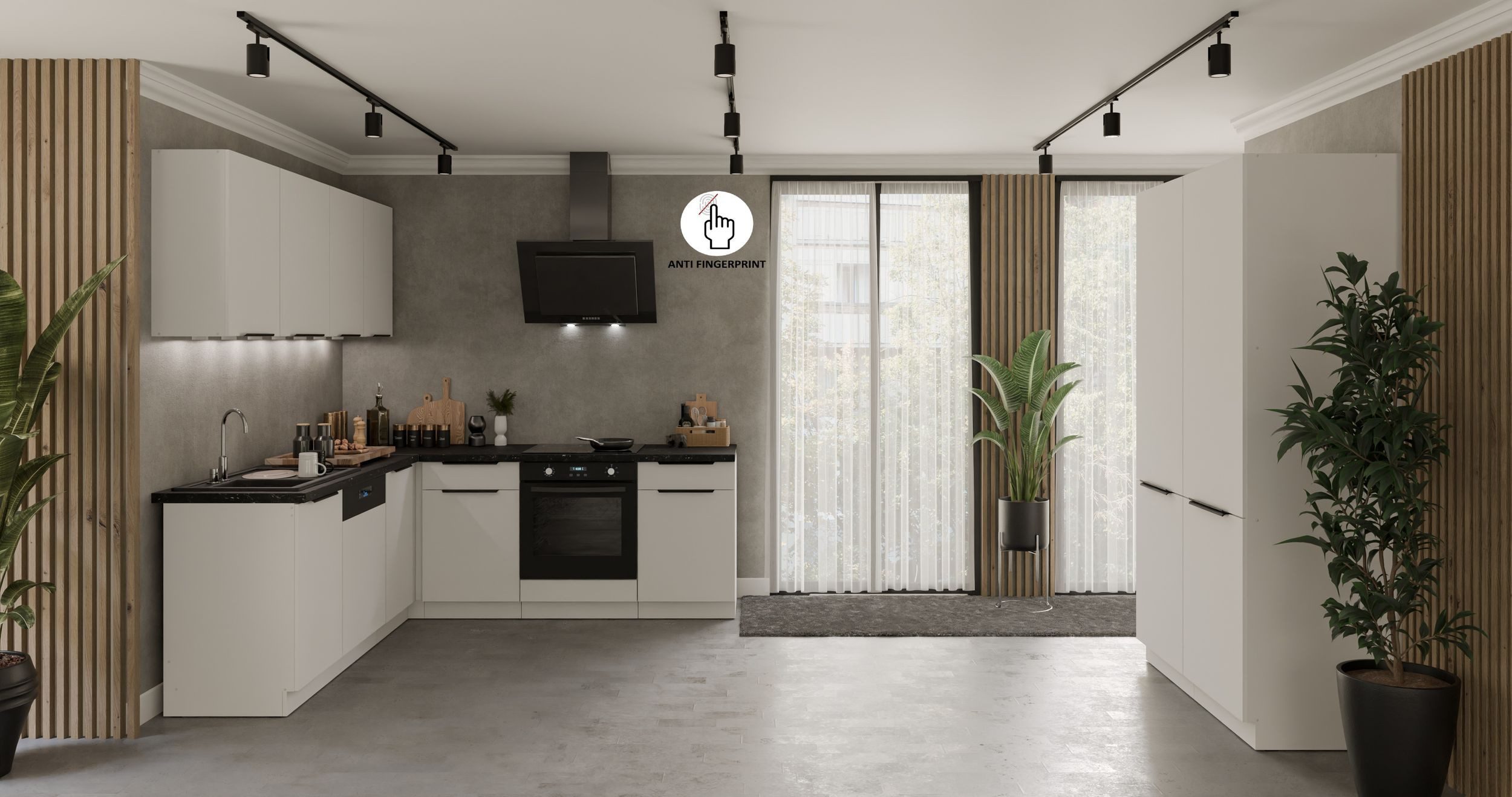 Ästhetik: Anti-Fingerprint-Fronten bietet eine extrem matte Oberfläche. Dadurch wird ein besonders weiches und angenehmes Soft-Feeling erzeugt. Oberflächen behalten länger ihr hochwertiges Aussehen, da unschöne Flecken reduziert werden.
