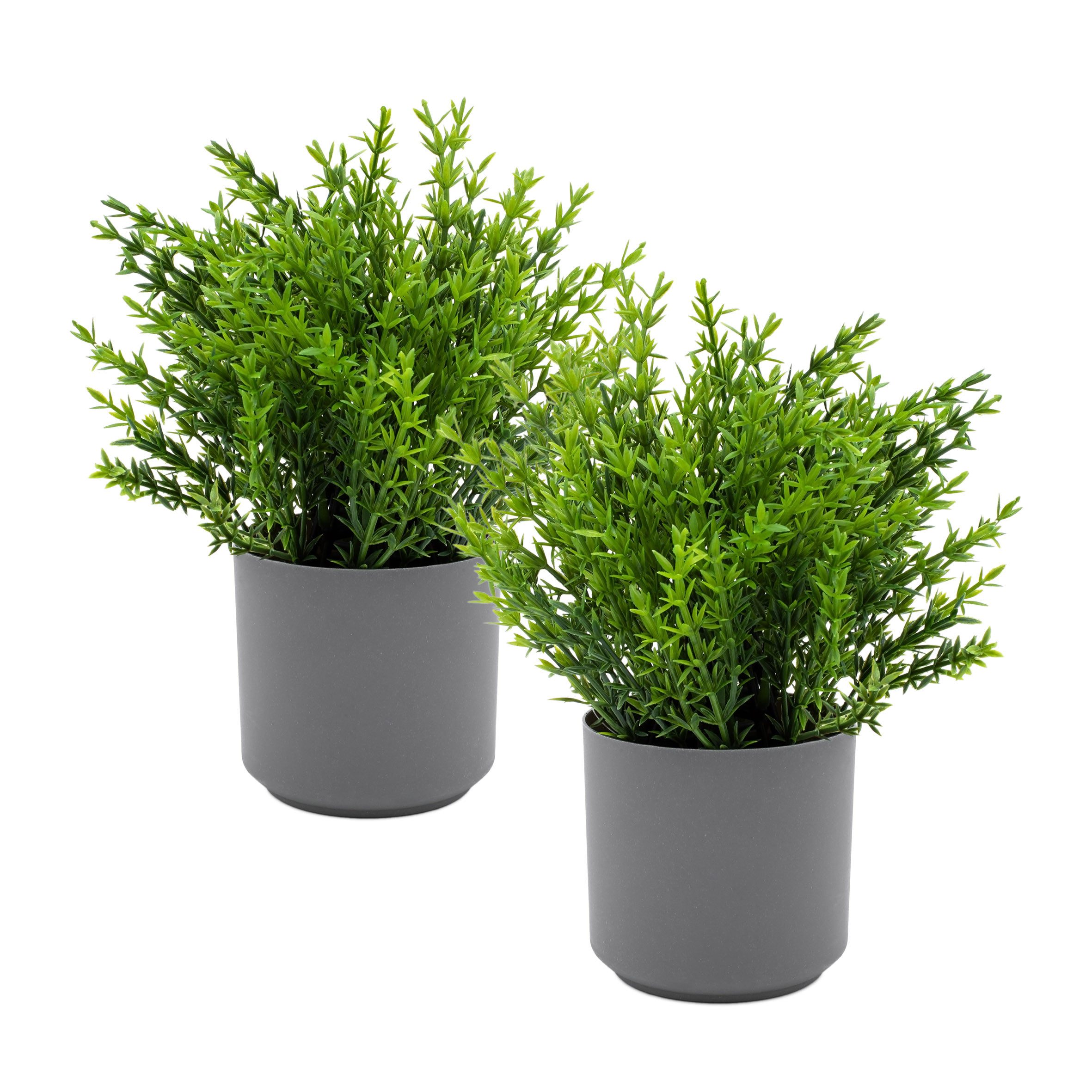 Kunstpflanzen Arragement 22 cm im grauen Topf - 2er Set - Künstliche Grünpflanzen mit Blumentopf