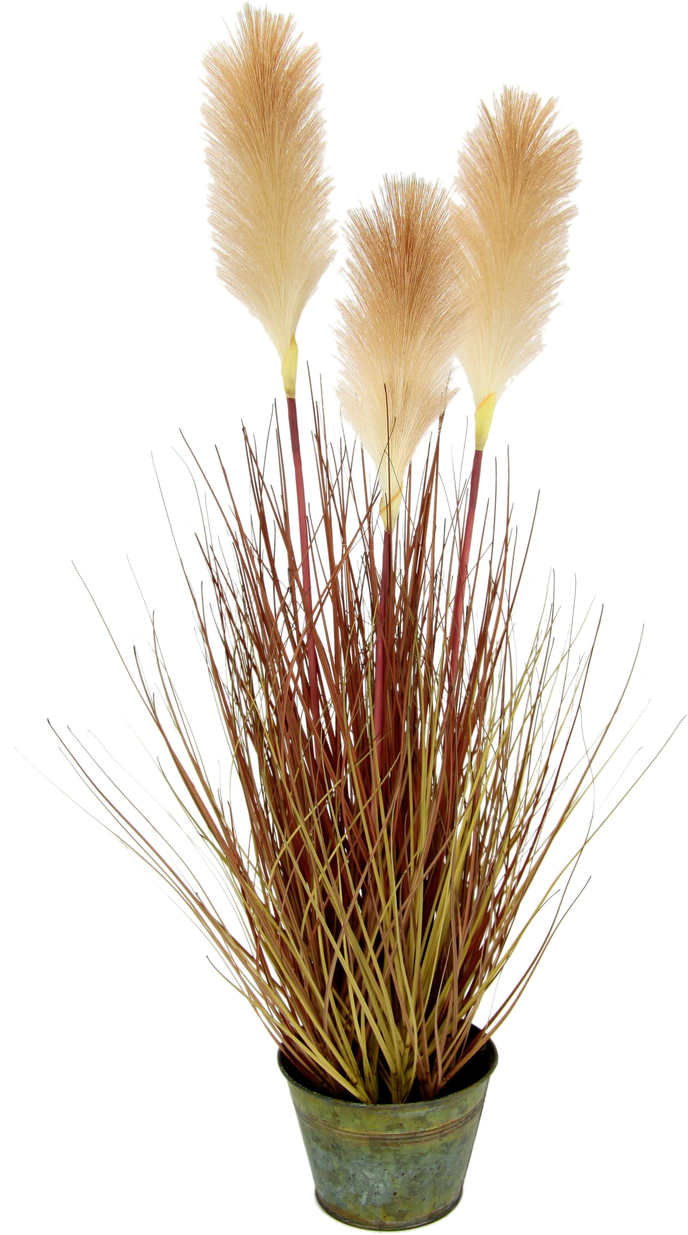 Dieses Kunstgras mit Pampas sieht wie echt aus und ist in einen Topf aus Metall fest gesetzt