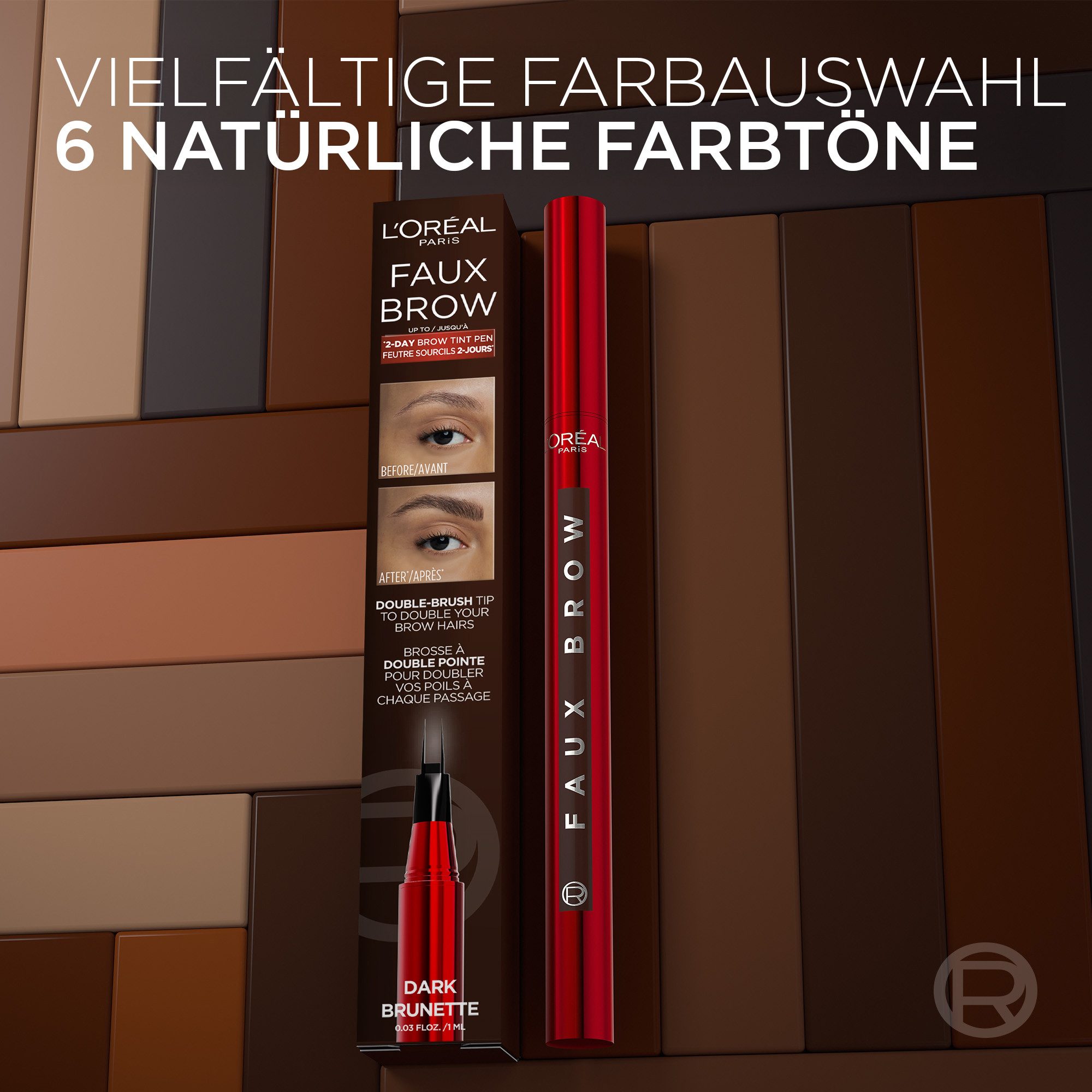 Für doppeltes Augenbrauenvolumen ohne abzufärben! Mit dem Infaillible Faux Brow Augenbrauenstift von L’Oréal Paris und seiner innovativen Doppelspitze lassen sich gleich zweimal soviele Augenbrauenhaare ziehen. Dank der 0,01mm feinen Doppelspitze und der angenehmen Formel werden volle Augenbrauen perfekt imitiert und in Szene gesetzt – bis zu 2 Tage lang! Die semi-permanente Formel verschmilzt förmlich mit den Brauenhaaren und hält äußeren Einflüssen bis zu 2 Tage lang stand, sodass selbst Schweiß, Hitze und Wasser ihr nichts anhaben können.
