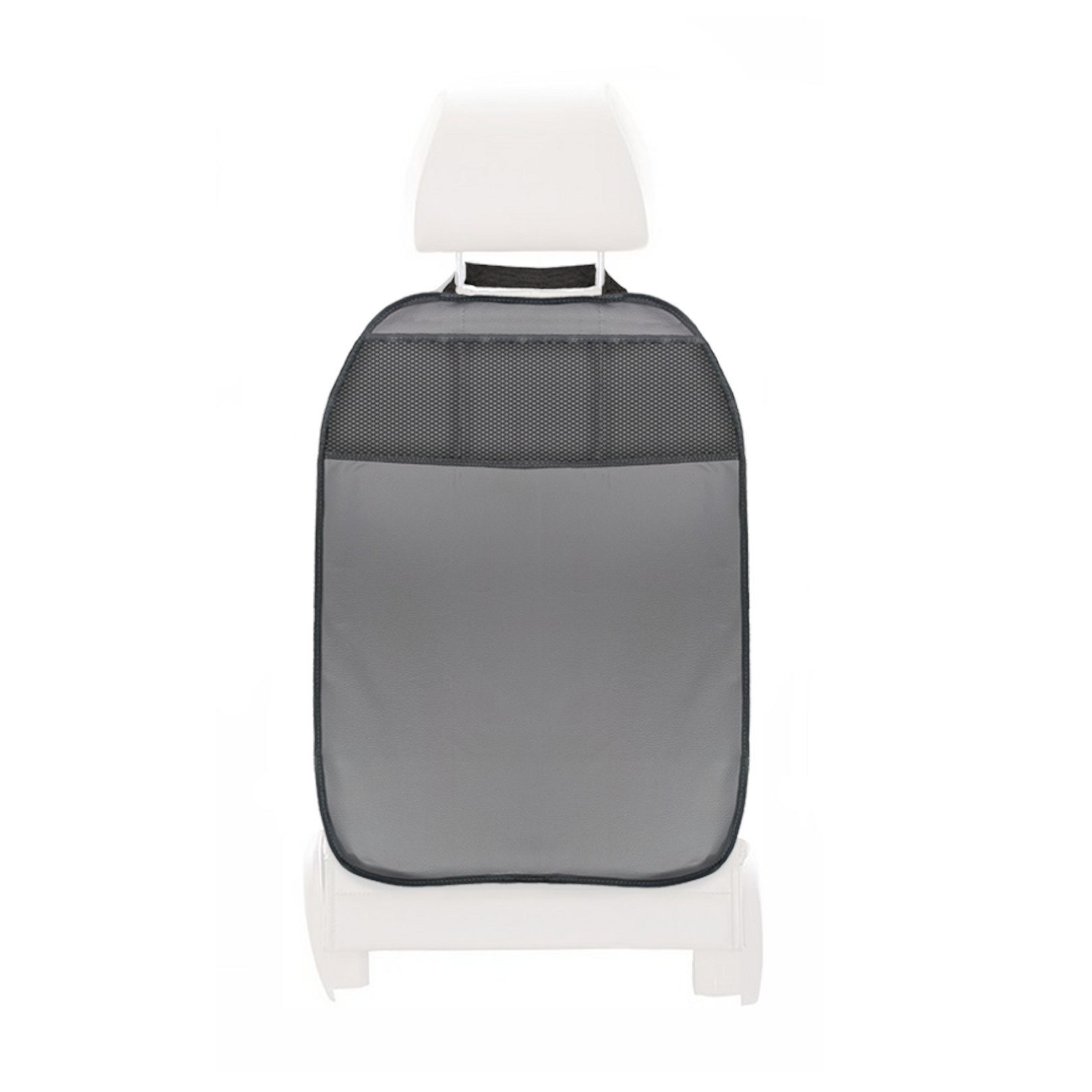 Bei uns erhalten Sie 1 x hochwertige, strapazierfähige Rückenlehnen-Abdeckung aus robustem Kunstleder in grau mit 3 praktischen Taschen zum Schutz Ihrer Fahrzeugsitze.