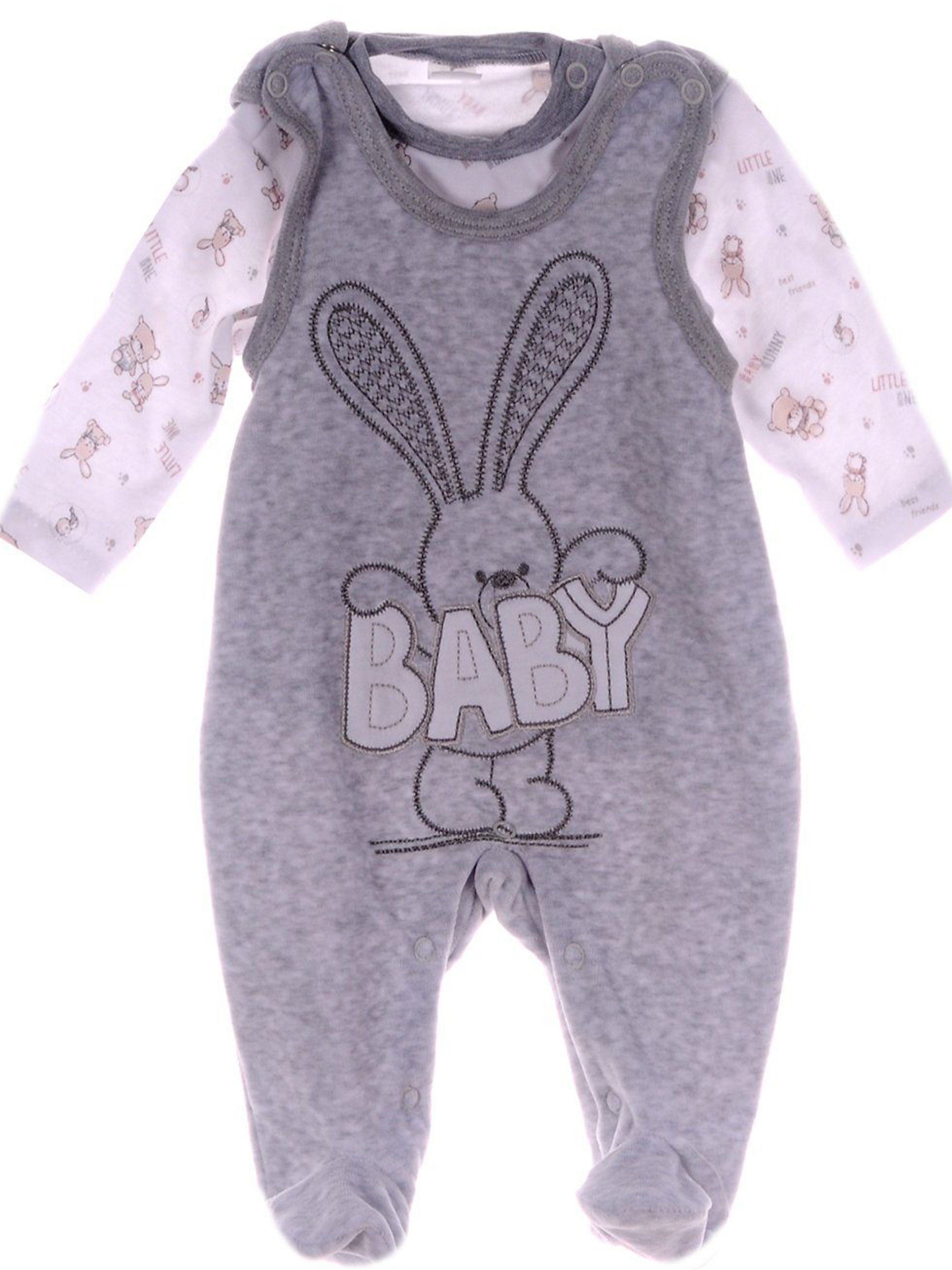 Baby-Strampler-Set in Grau mit Hasen-Stickerei & gemustertem Langarmshirt – kuscheliger Velours & reine Baumwolle – neutral für Jungen und Mädchen Dieses liebevoll gestaltete 2-teilige Babyset kombiniert einen grauen Velours-Strampler mit niedlicher Hasen-Stickerei mit einem weiß gemusterten Langarmshirt, verziert mit kleinen Tieren. Der Strampler besteht aus einem weichen, wärmenden Materialmix (80 % Baumwolle, 20 % Polyester) – perfekt für zarte Babyhaut. Das Langarmshirt ist aus 100 % reiner Baumwolle gefertigt und sorgt für angenehmen Tragekomfort und Atmungsaktivität. Praktische Druckknöpfe an Schultern und im Schritt erleichtern das An- und Ausziehen. Das neutrale Design eignet sich ideal für Jungen und Mädchen und ist damit eine wunderbare Wahl als Geschenk zur Geburt oder für die Erstausstattung.